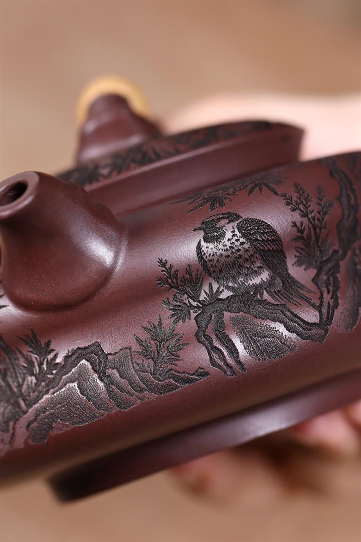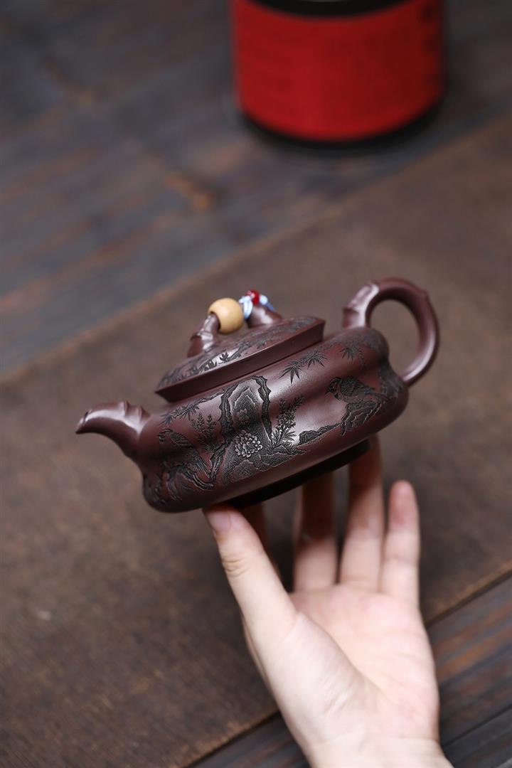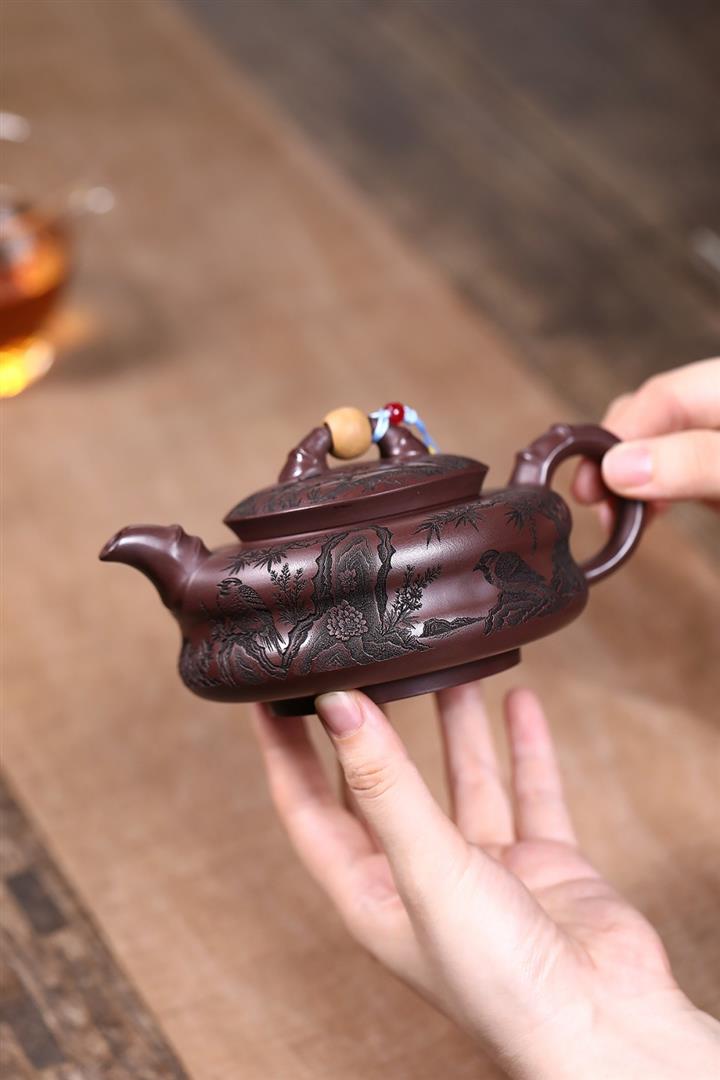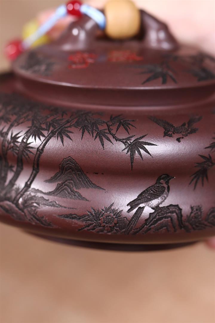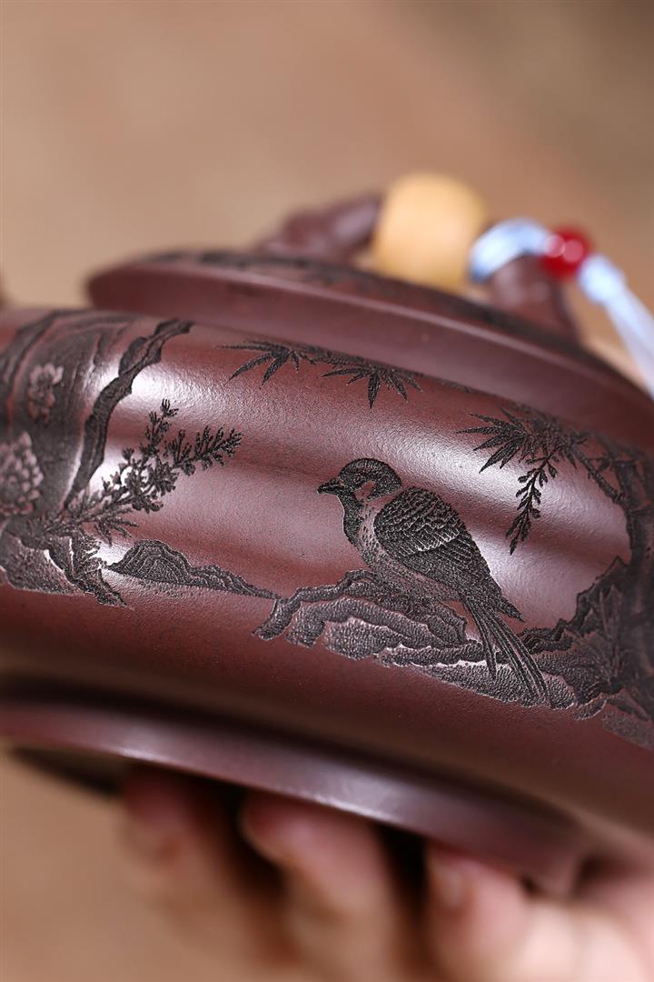 手工紫砂壺圍爐喜上枝頭茶壺POT4256