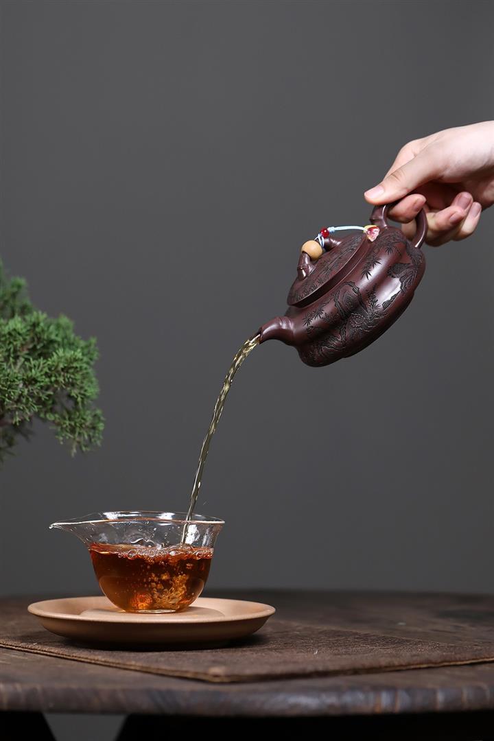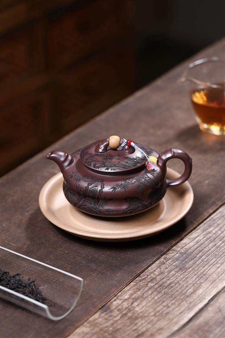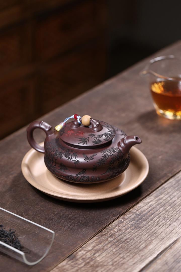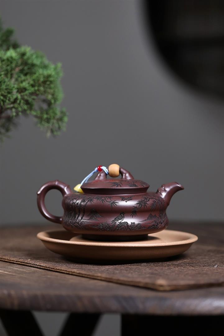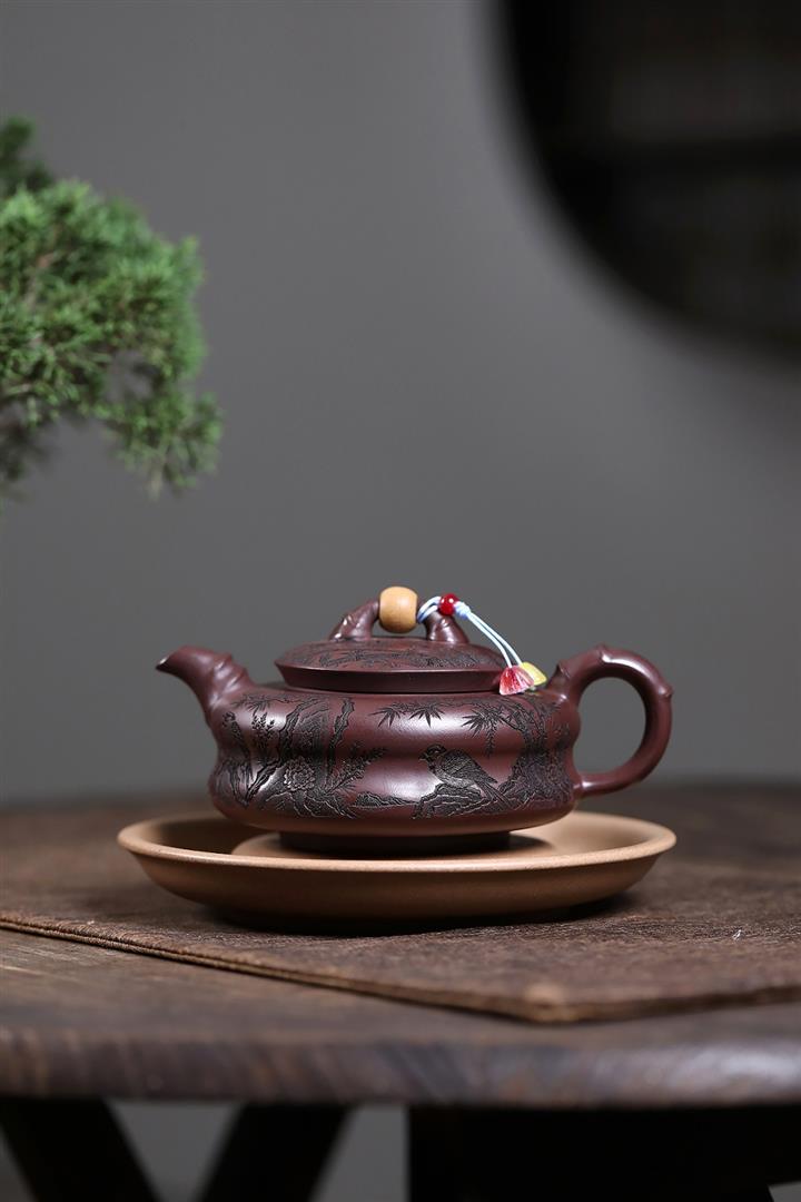 手工紫砂壺圍爐喜上枝頭茶壺POT4256