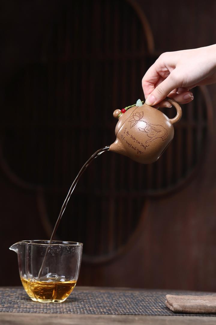 【泥料特點】砂土氣重,似淳實農民,日久使用,漸露鋒芒,養成變化,溫潤莊重。紫砂是壹種雙重氣孔結構的多孔性材質,氣孔微細,密度高。用紫砂壺沏茶,不失原味,且香不渙散,得茶之真香真味。紫砂使用越久,壺身色澤越發光亮照人,氣韻溫雅。紫砂壺長久使用器身會因撫摸擦拭,變得越發溫潤光澤。