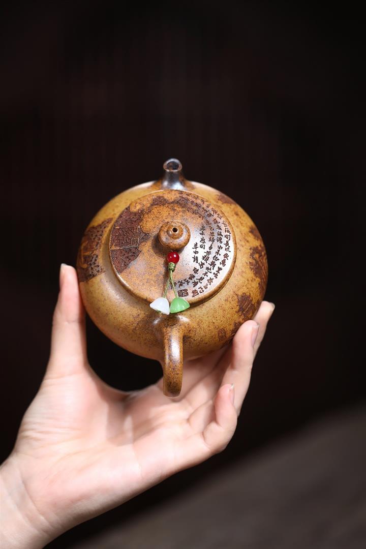 250cc原礦赤金朱泥石紋蓮華泡茶壺POT9126