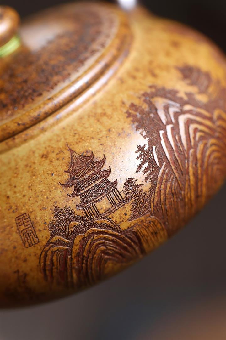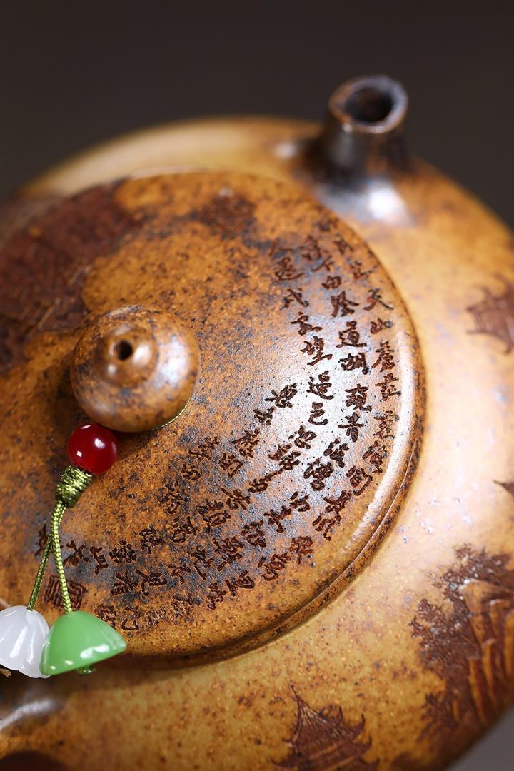 390cc原礦綠泥江山龍吟滿刻秦權茶壺POT9124