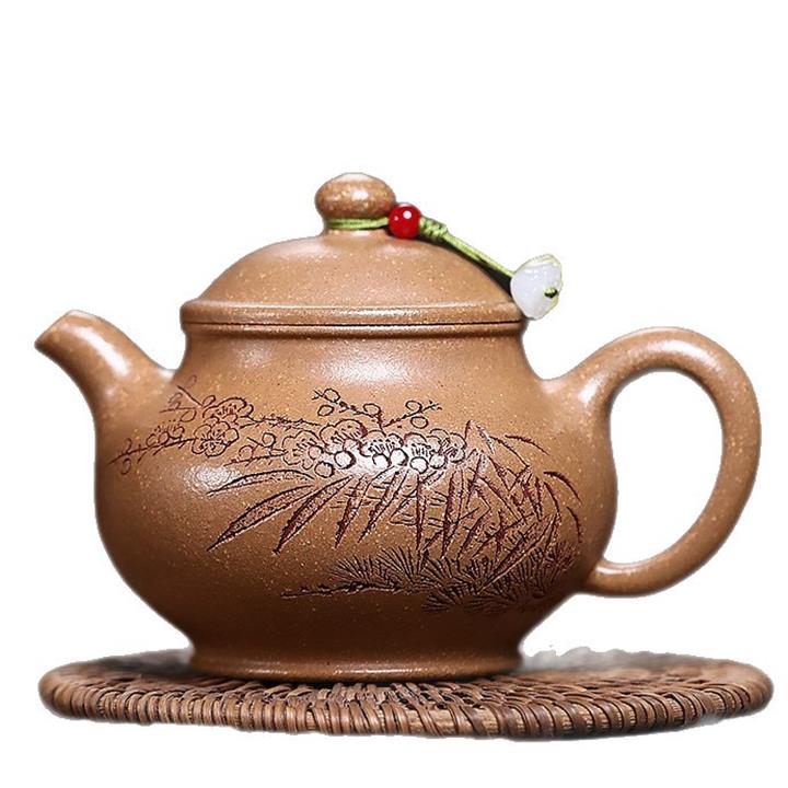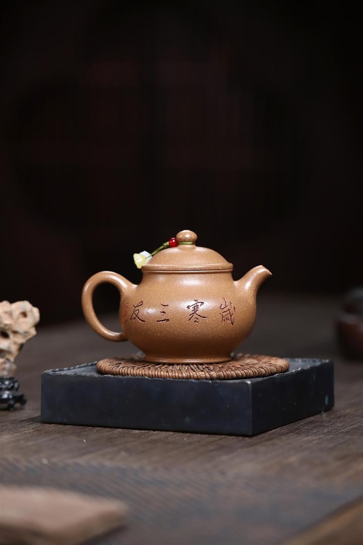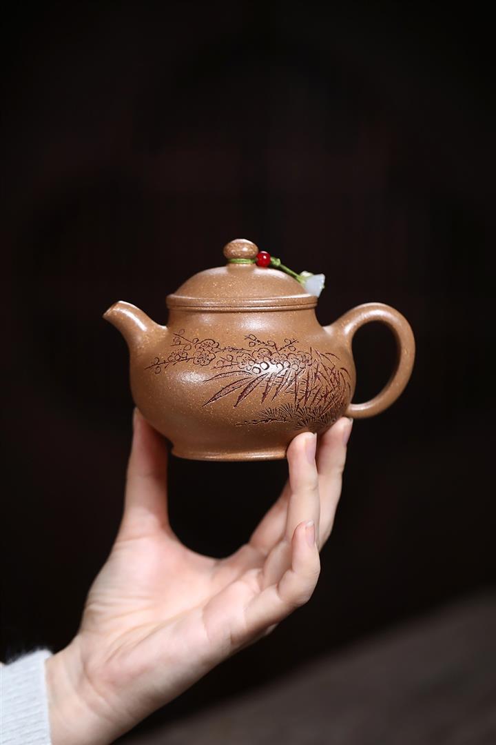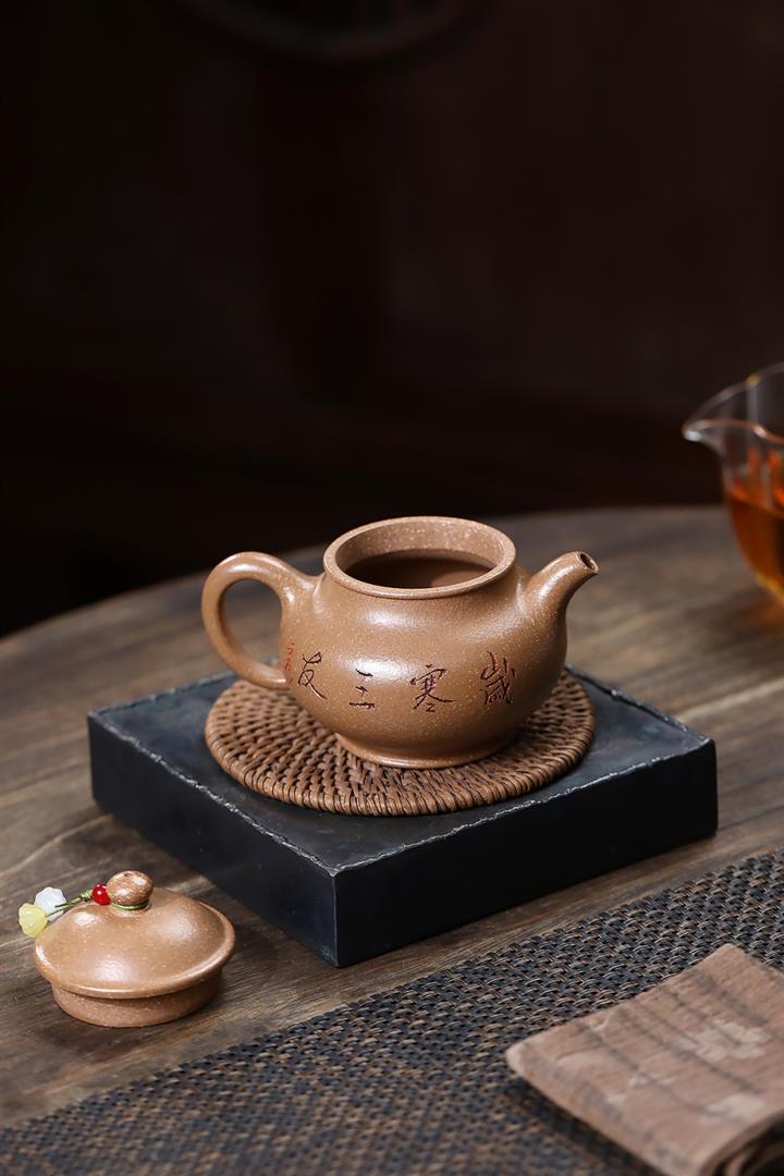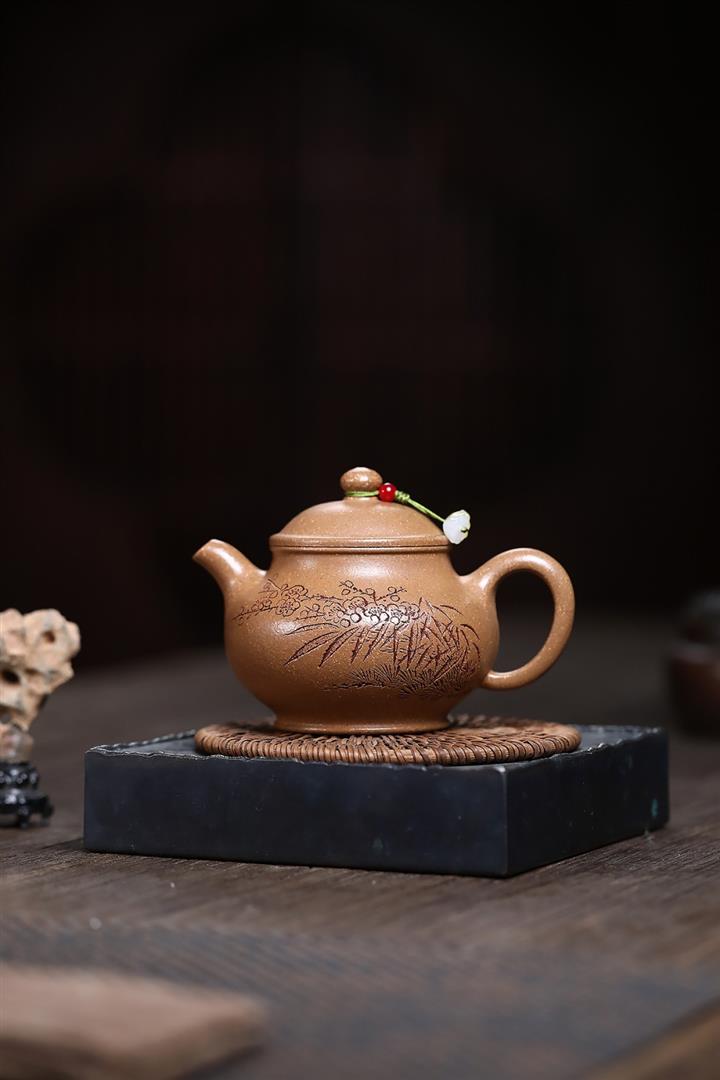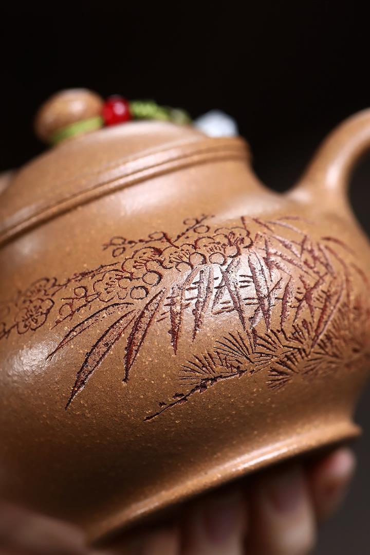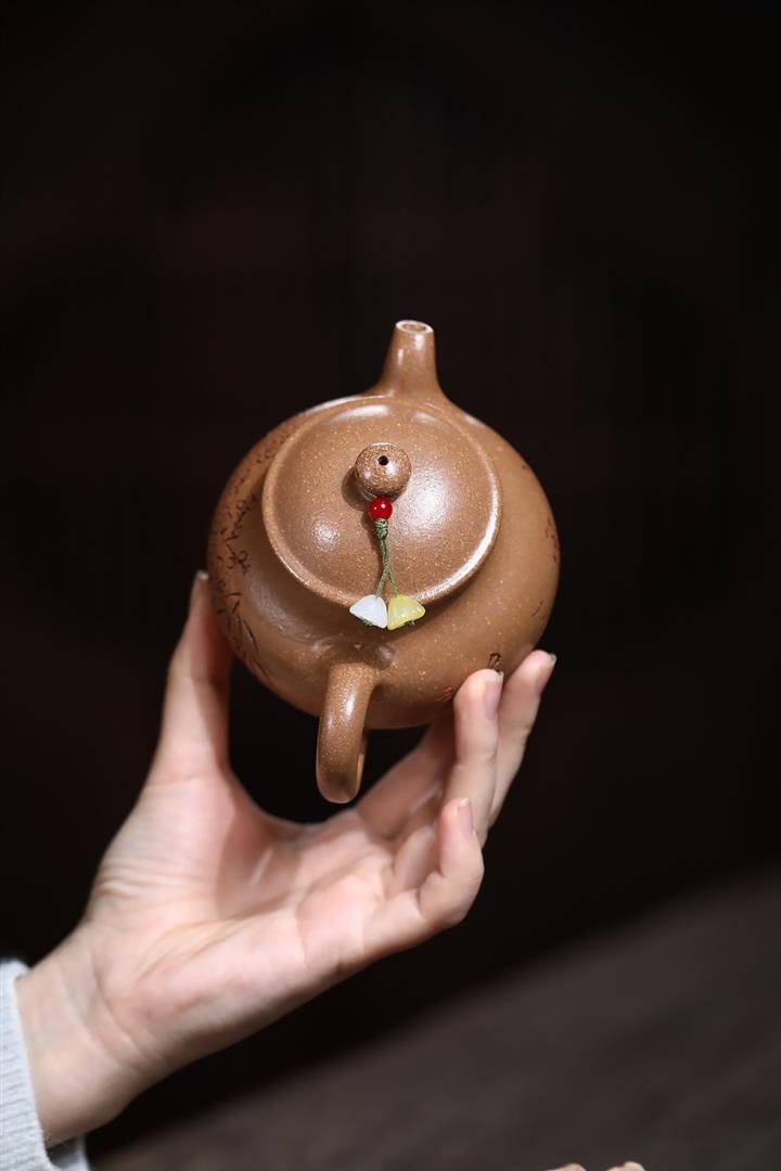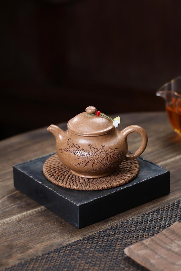 紫砂壺名家老紫泥刻繪周盤壺POT4009
