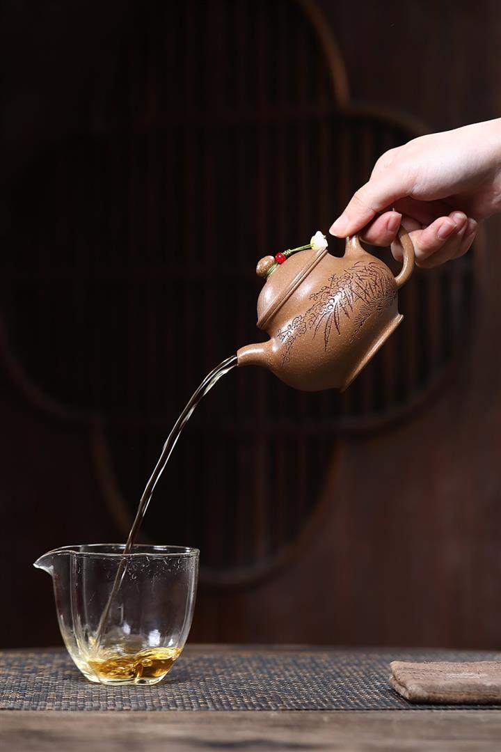【泥料特點】砂土氣重,似淳實農民,日久使用,漸露鋒芒,養成變化,溫潤莊重。紫砂是壹種雙重氣孔結構的多孔性材質,氣孔微細,密度高。用紫砂壺沏茶,不失原味,且香不渙散,得茶之真香真味。紫砂使用越久,壺身色澤越發光亮照人,氣韻溫雅。紫砂壺長久使用器身會因撫摸擦拭,變得越發溫潤光澤。