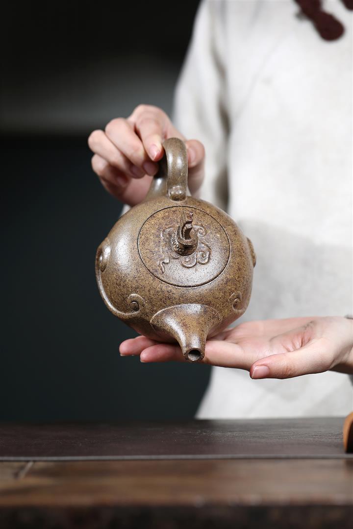 260cc原礦綠泥滿刻大聖雲藏漢瓦茶壺POT8243