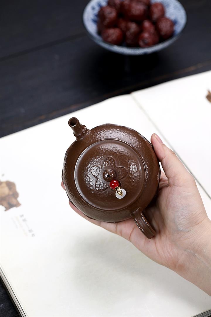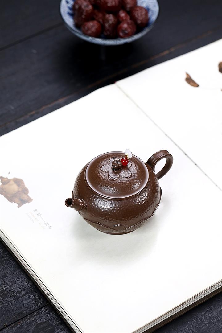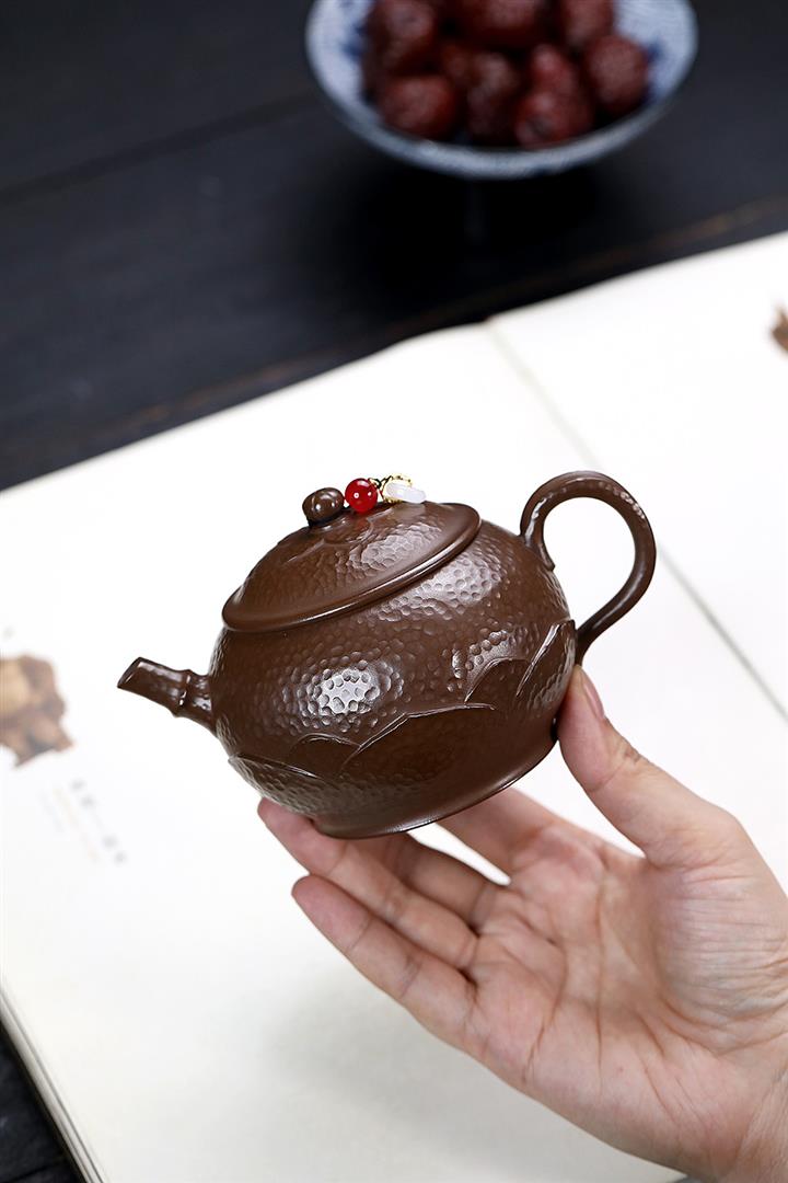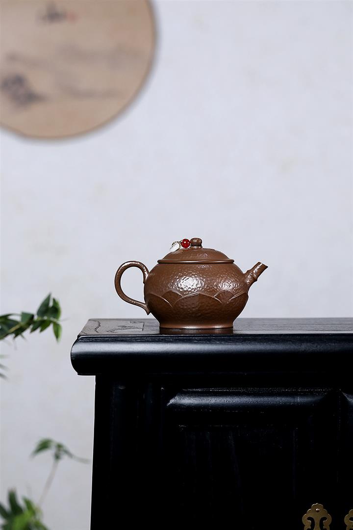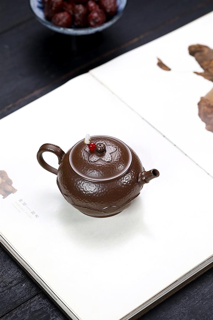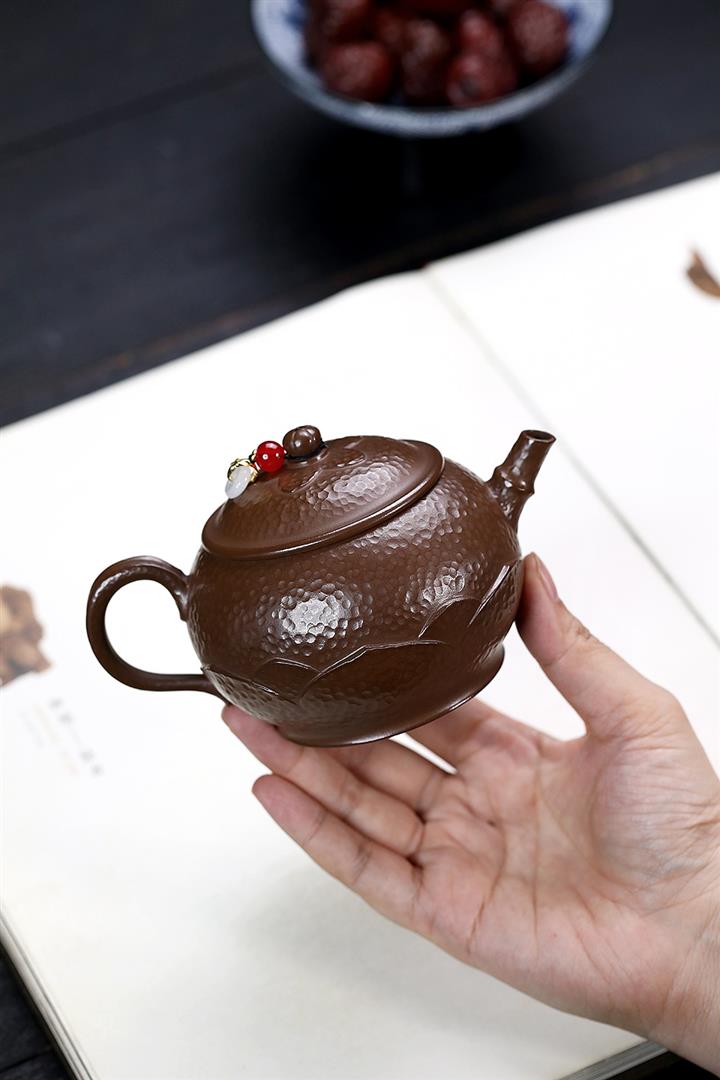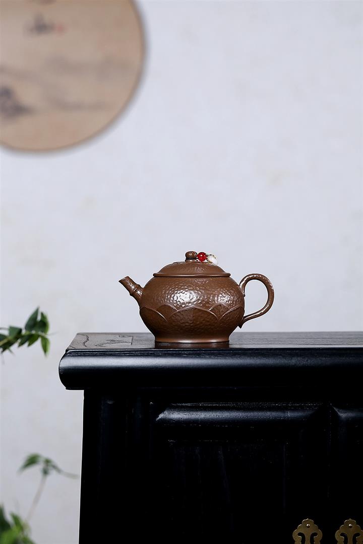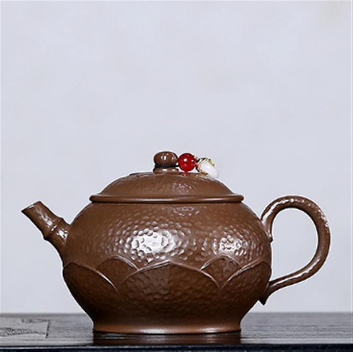 250cc原礦赤金朱泥石紋蓮華泡茶壺POT9126