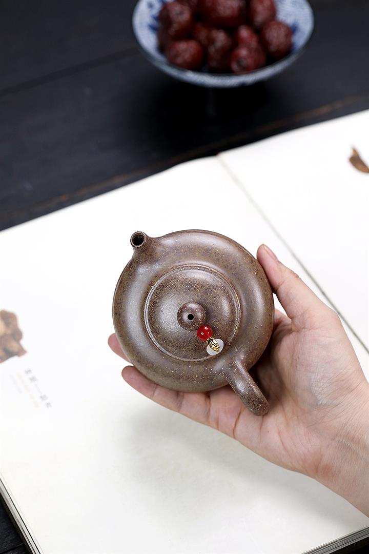 【泥料特點】砂土氣重,似淳實農民,日久使用,漸露鋒芒,養成變化,溫潤莊重。紫砂是壹種雙重氣孔結構的多孔性材質,氣孔微細,密度高。用紫砂壺沏茶,不失原味,且香不渙散,得茶之真香真味。紫砂使用越久,壺身色澤越發光亮照人,氣韻溫雅。紫砂壺長久使用器身會因撫摸擦拭,變得越發溫潤光澤。
