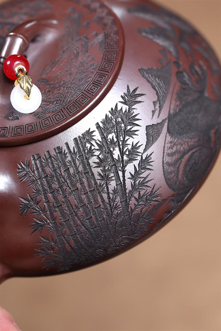 原礦大紅袍手工刻字金潘茶壺POT7120