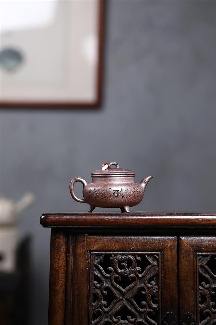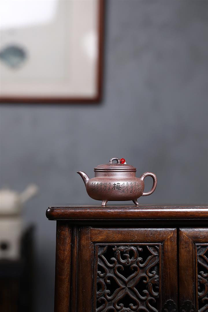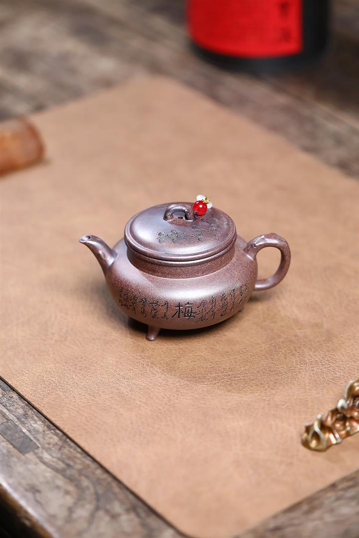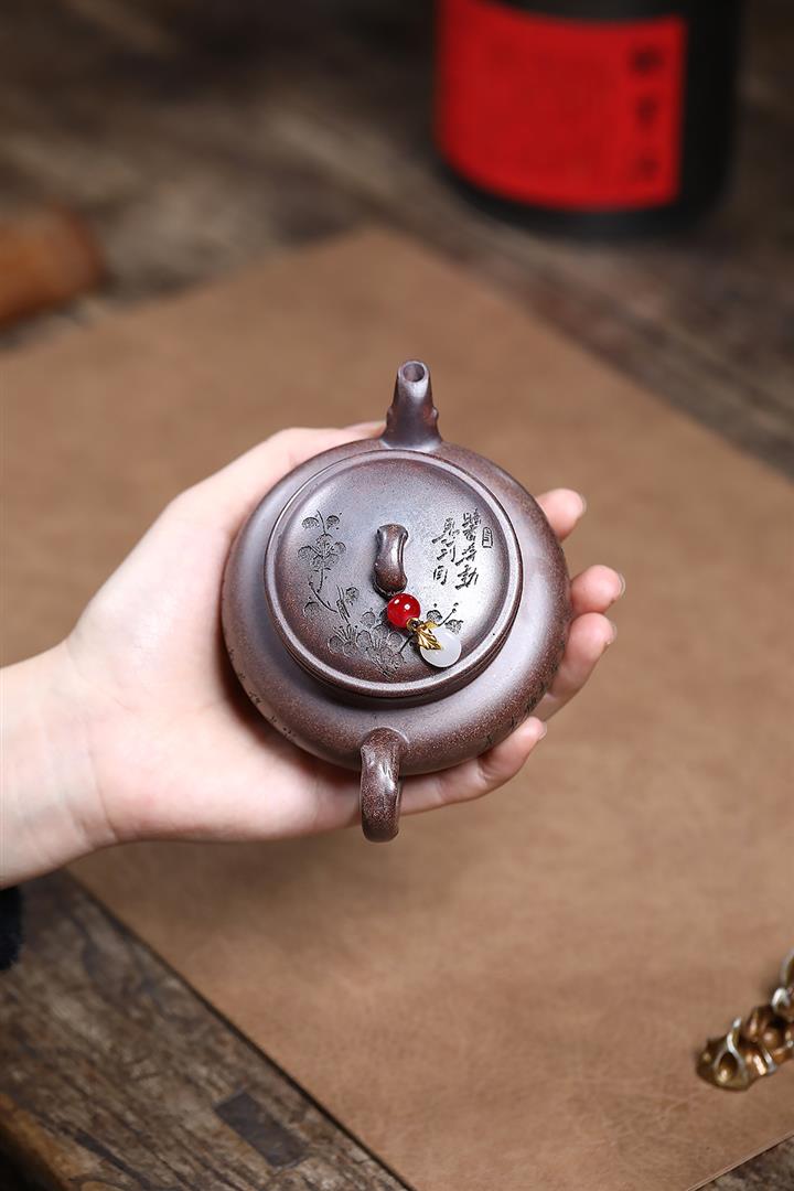 原礦紫砂君子蘭刻繪漢鐸茶壺POT7517