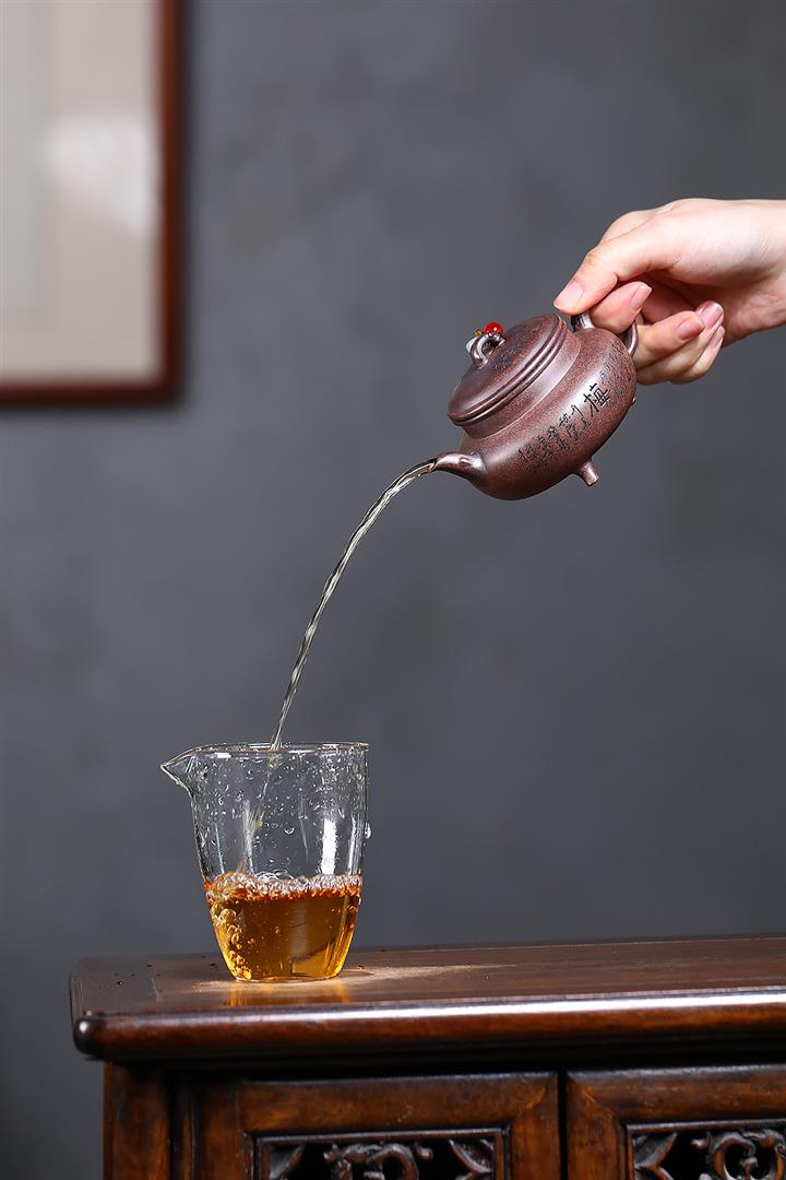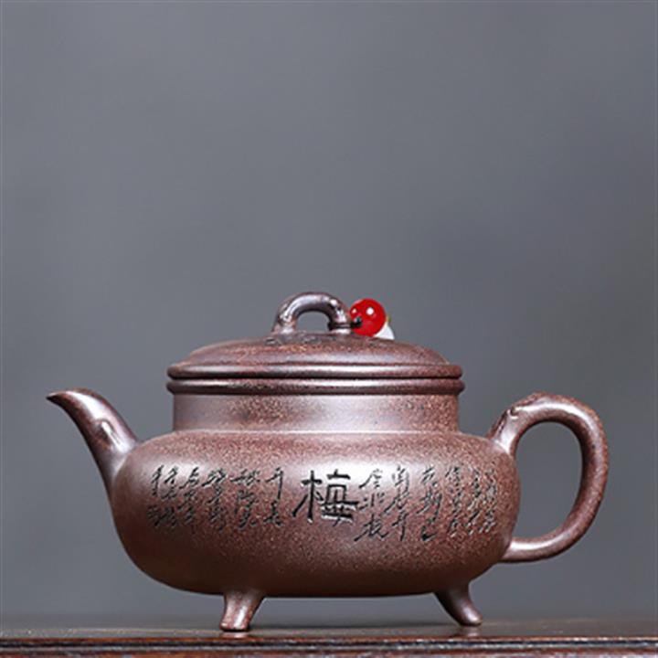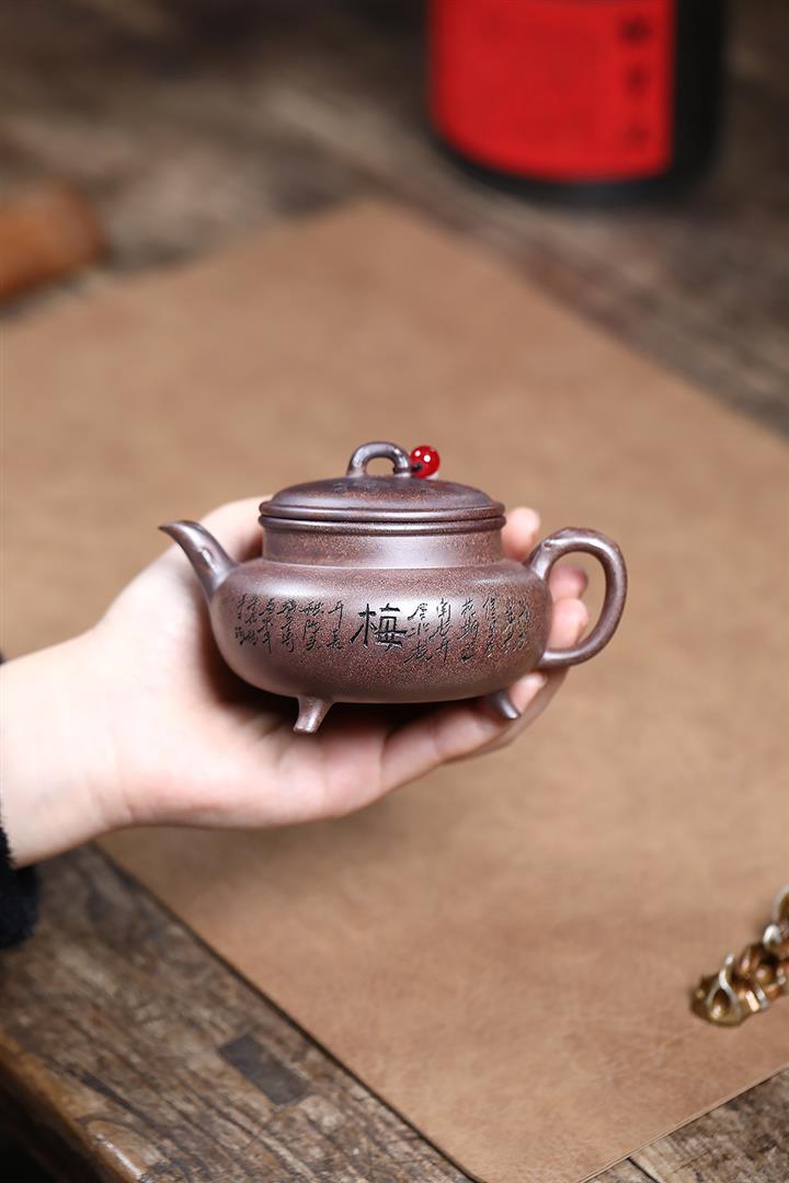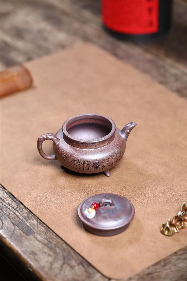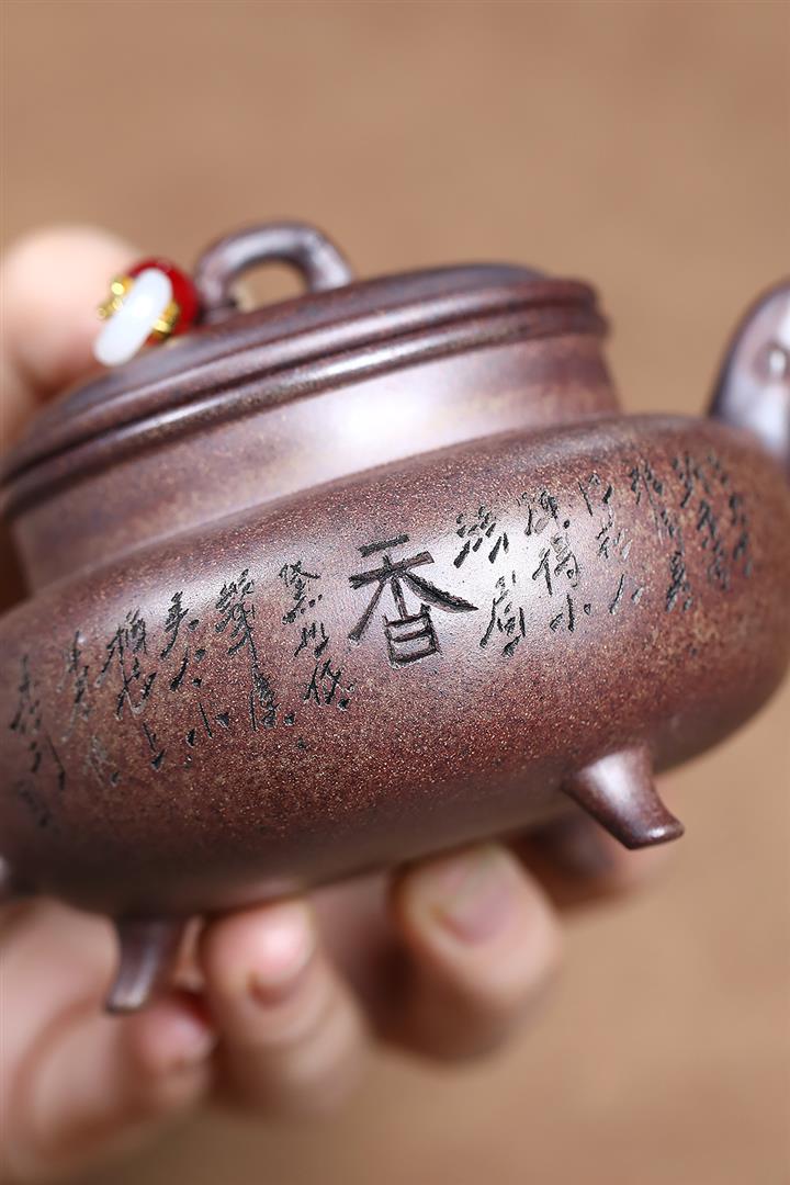原礦紫砂君子蘭刻繪漢鐸茶壺POT7517