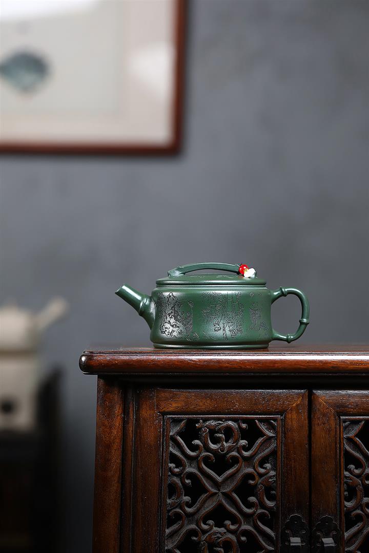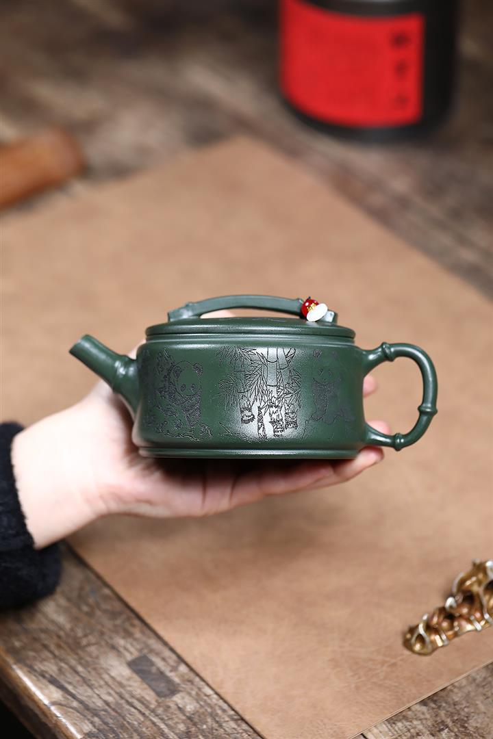 330cc原礦墨綠泥熊貓漢瓦茶壺POT9168