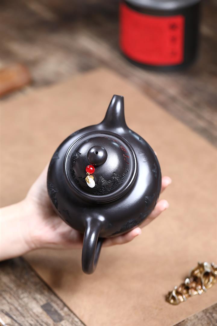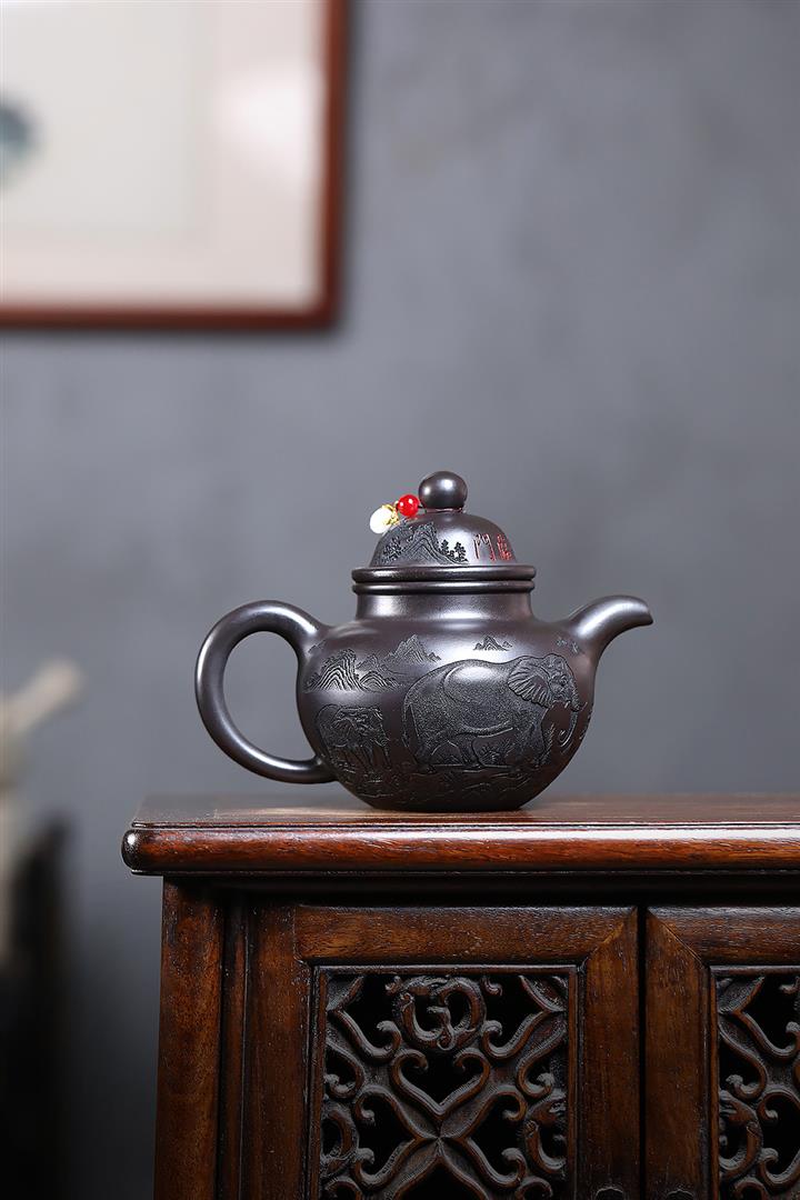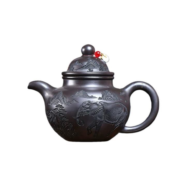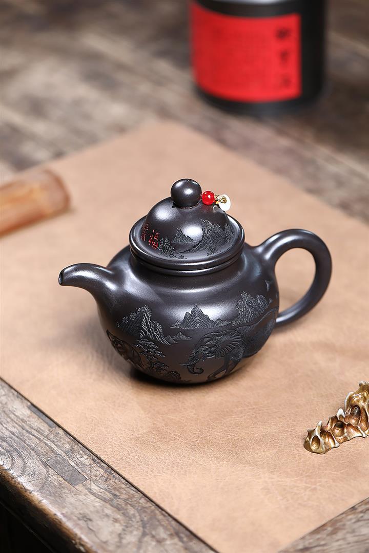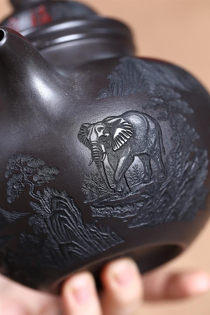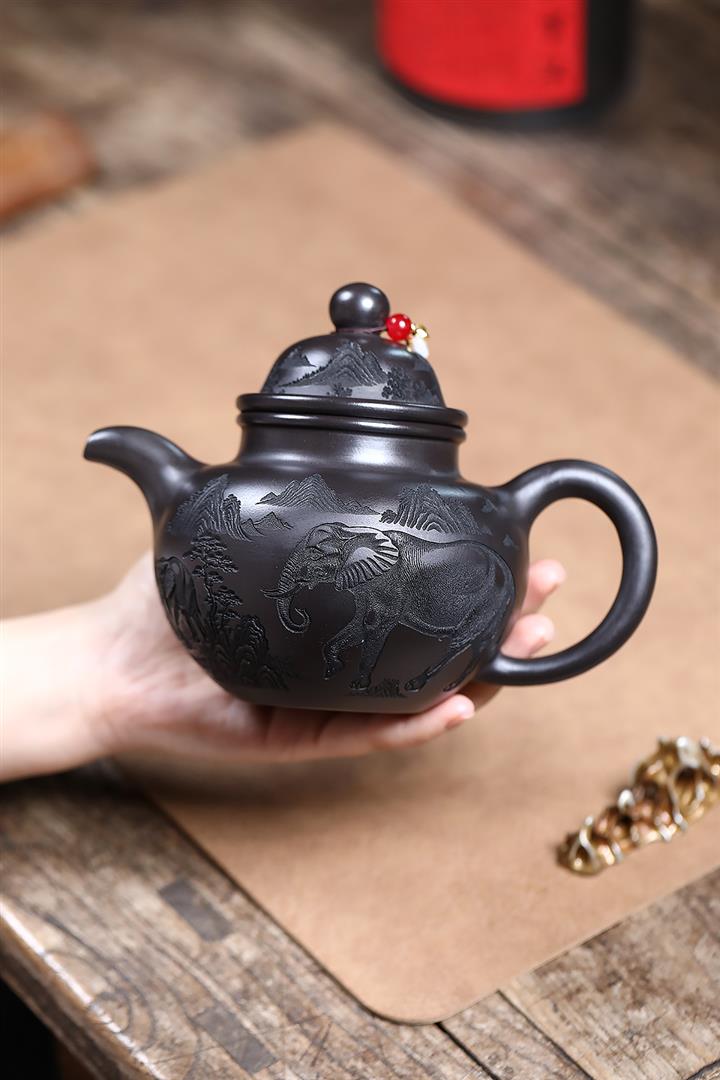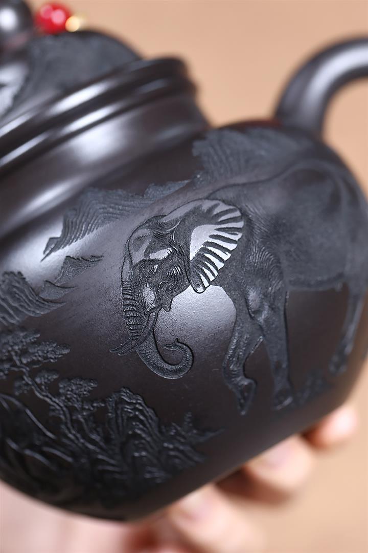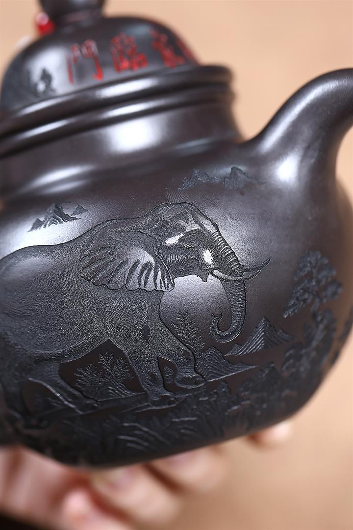 500cc原礦玄鐵石黃福象掇球泡茶壺POT9169