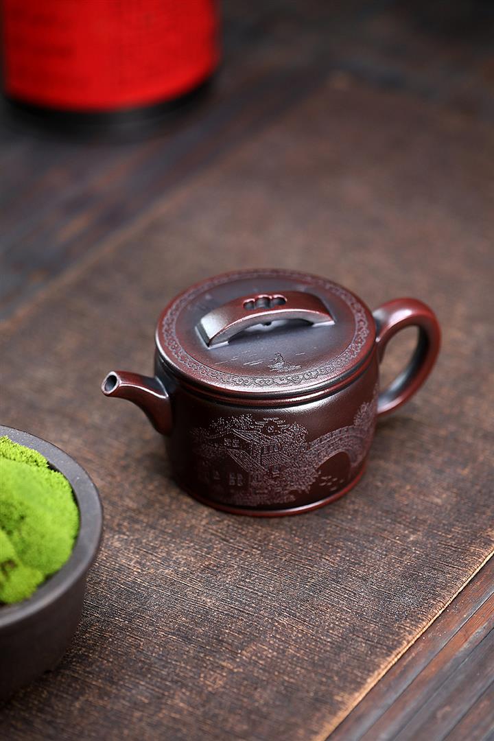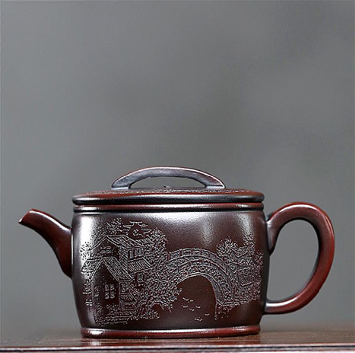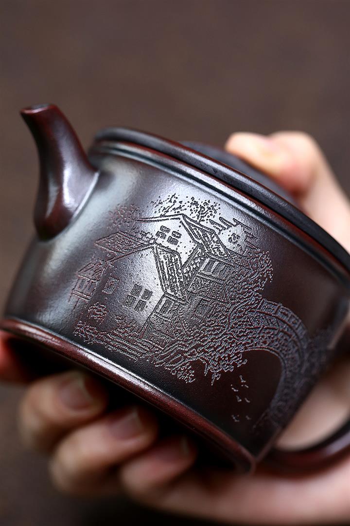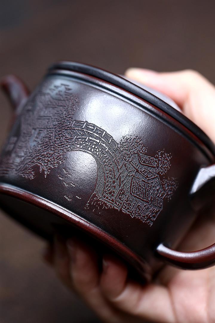 原礦大紅袍潘壺五牛圖紫砂壺POT4602