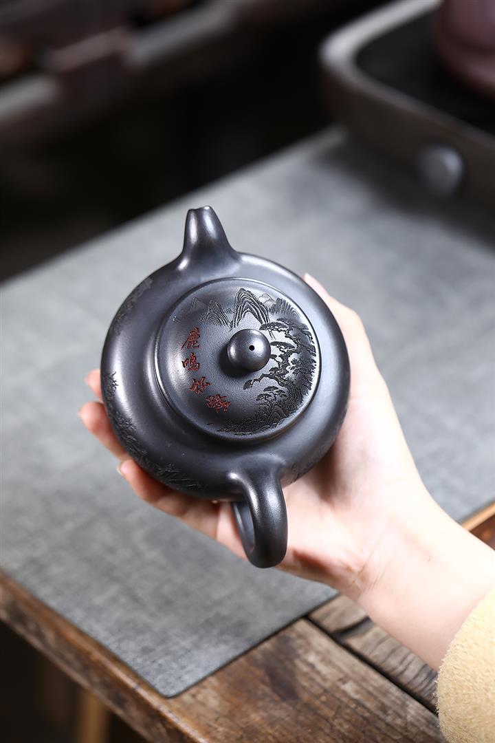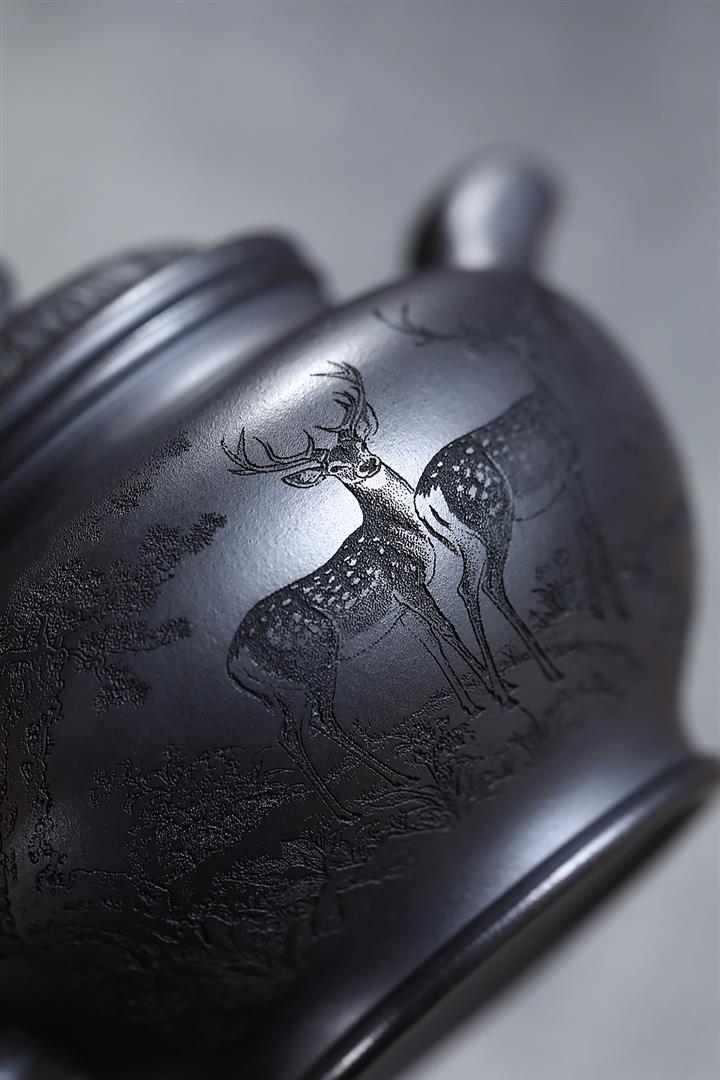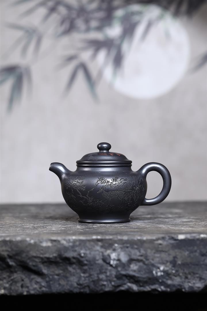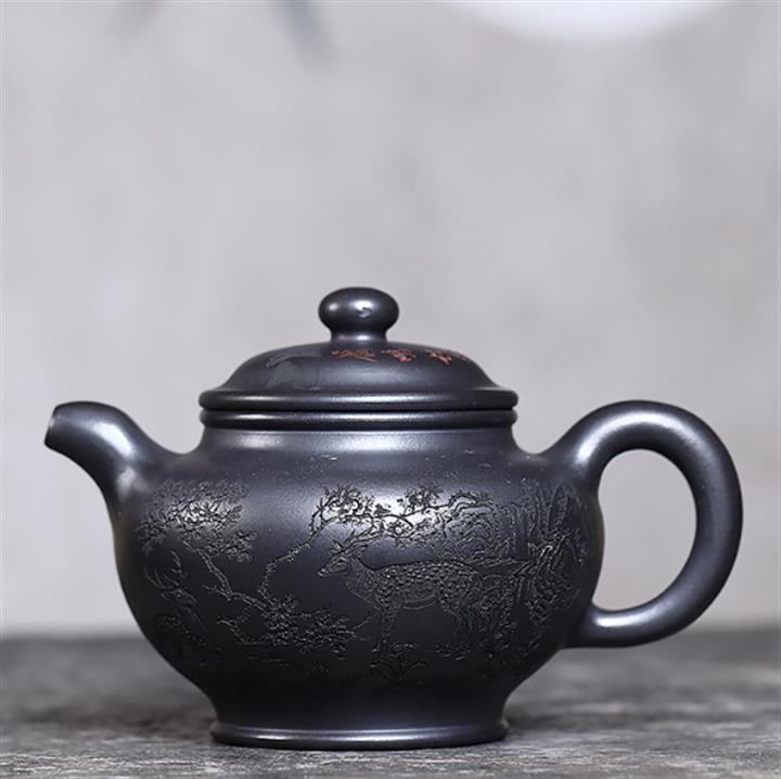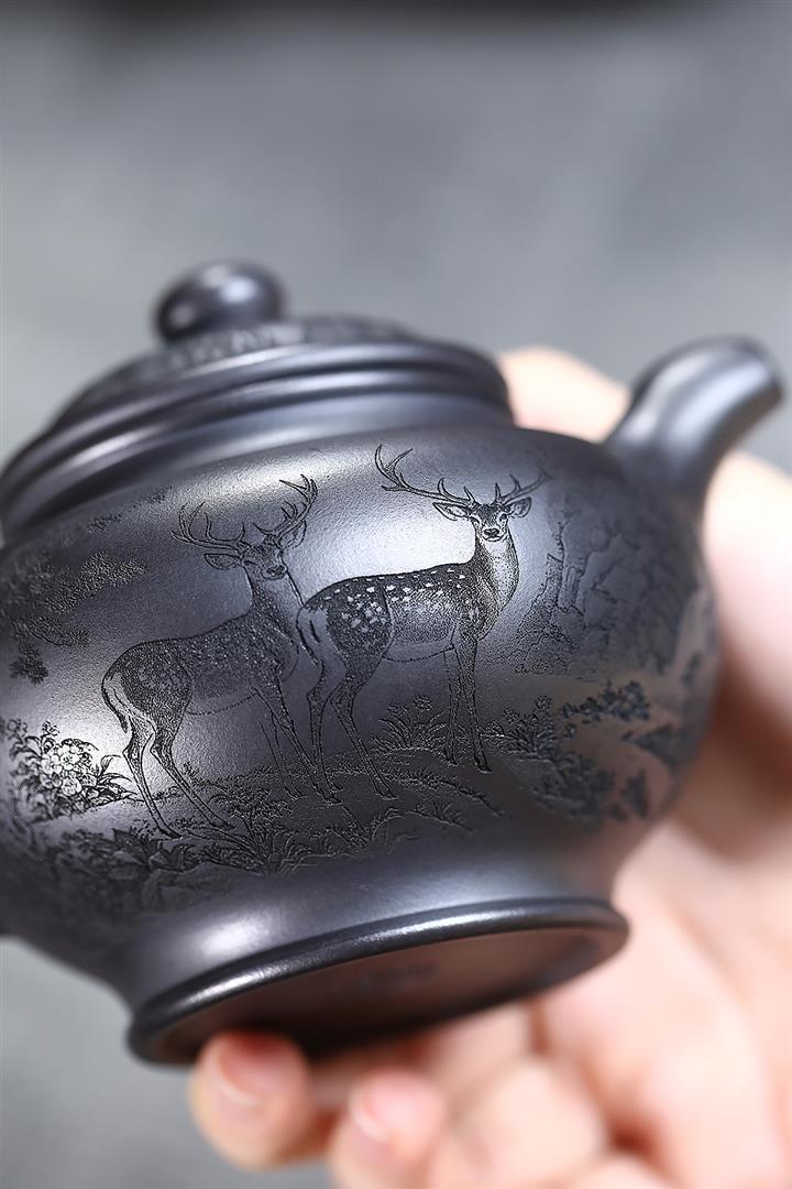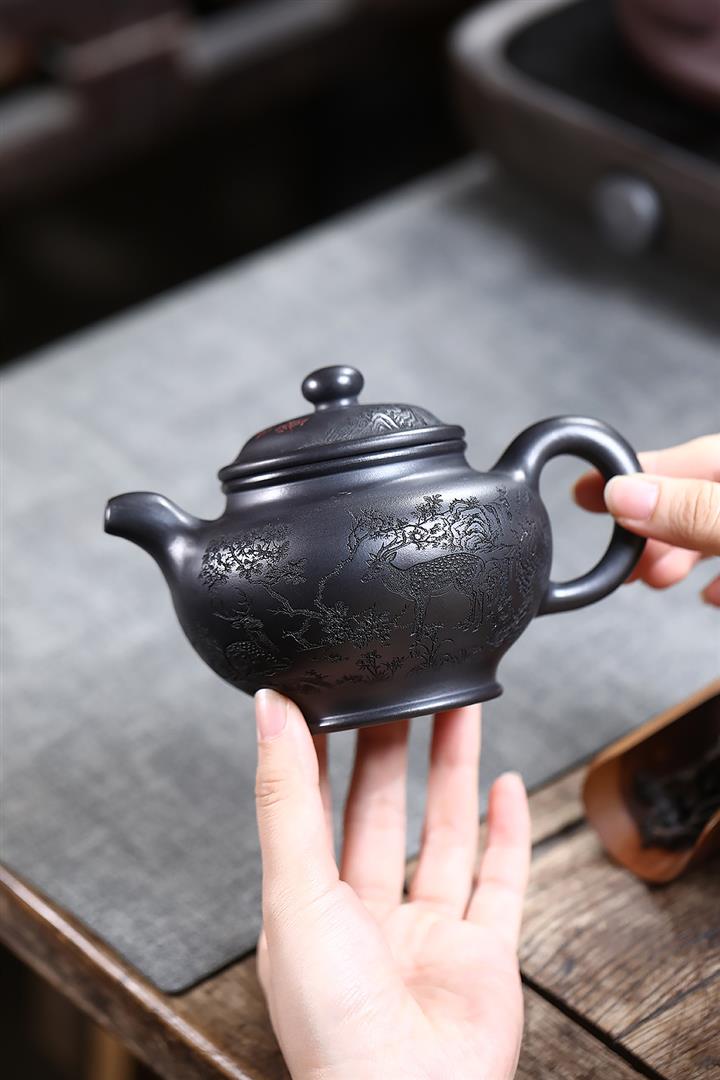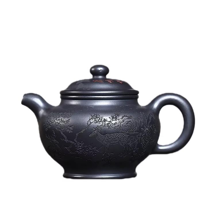 330cc原礦玄鐵石黃鹿鳴松鶴掇只茶壺POT9190