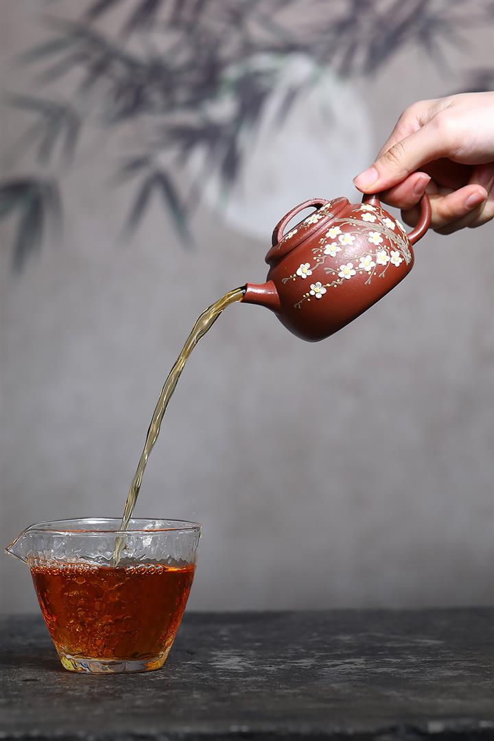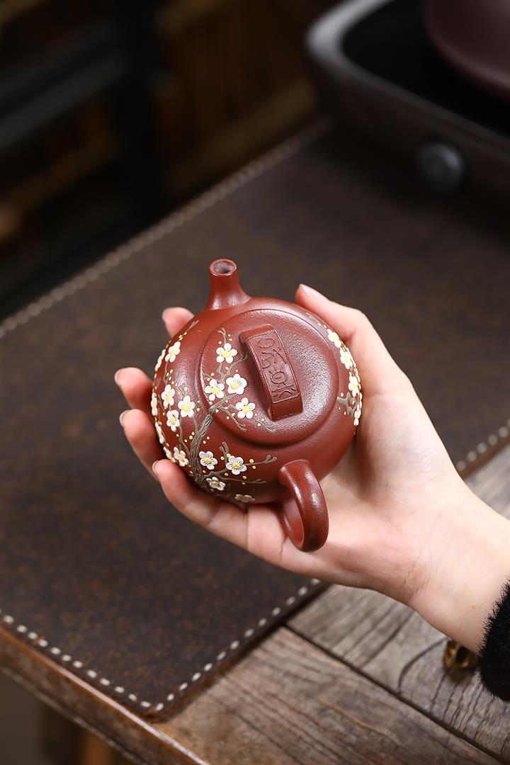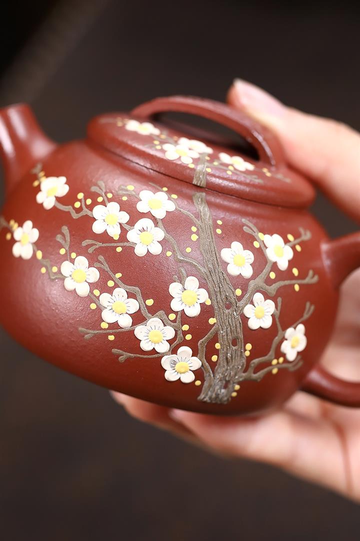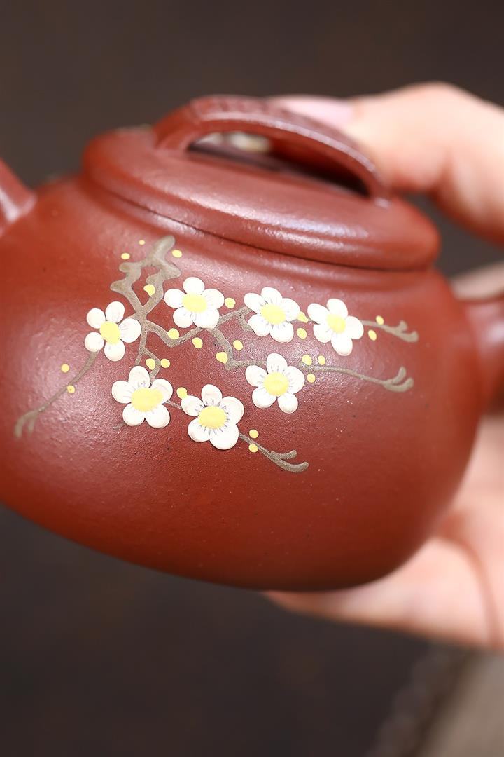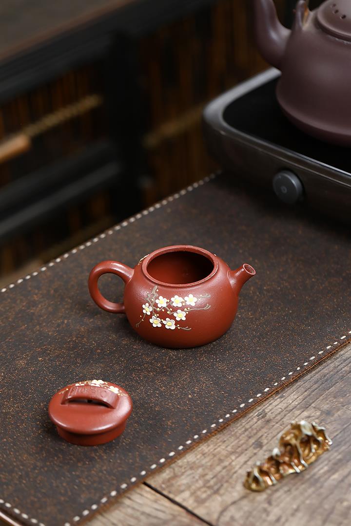 190cc原礦紅降坡傲梅圓瓦茶壺POT9193