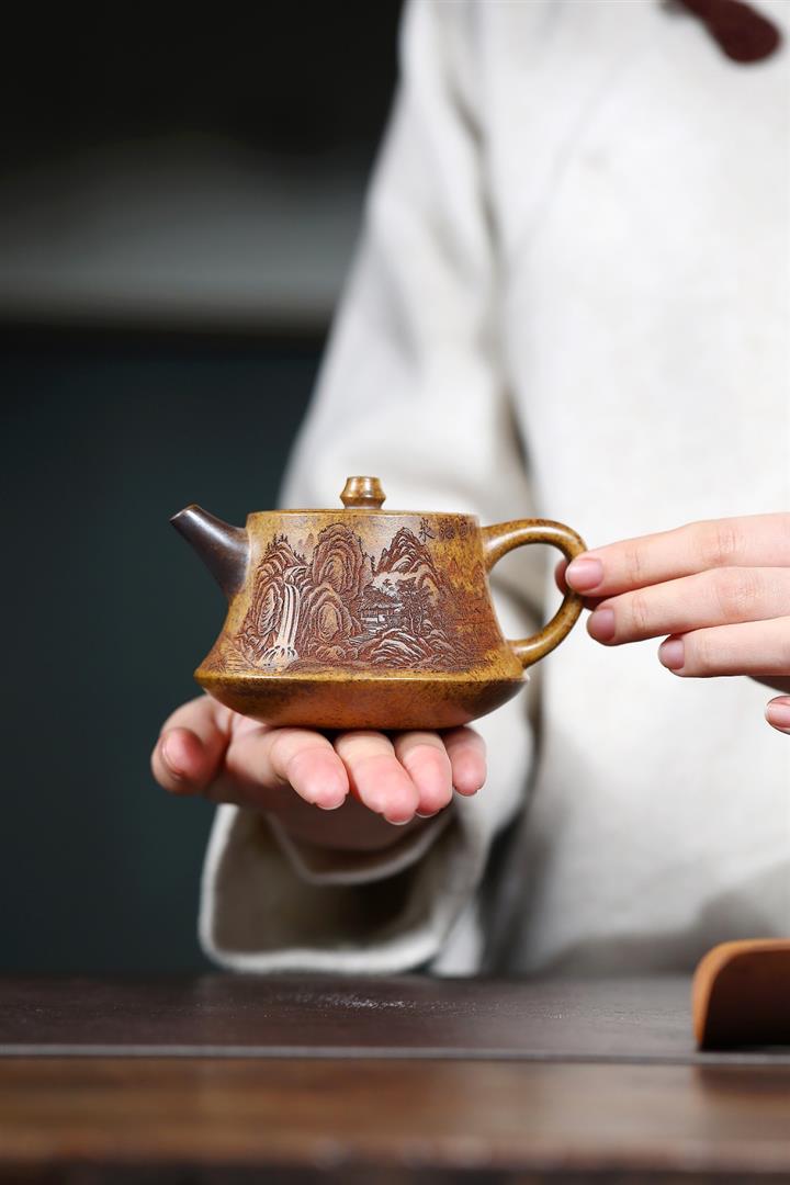 【作品介紹】此款壺形線條流暢,壺把,壺嘴,壺身壹氣呵成栩栩如生,是收藏把玩的好壺,泥料色澤古樸典雅,日久使用,漸露鋒芒,養成變化快,溫潤莊重,用其泡茶,使用的年代久,壺身就溫潤,泡出來的茶湯也就醇郁芳馨。