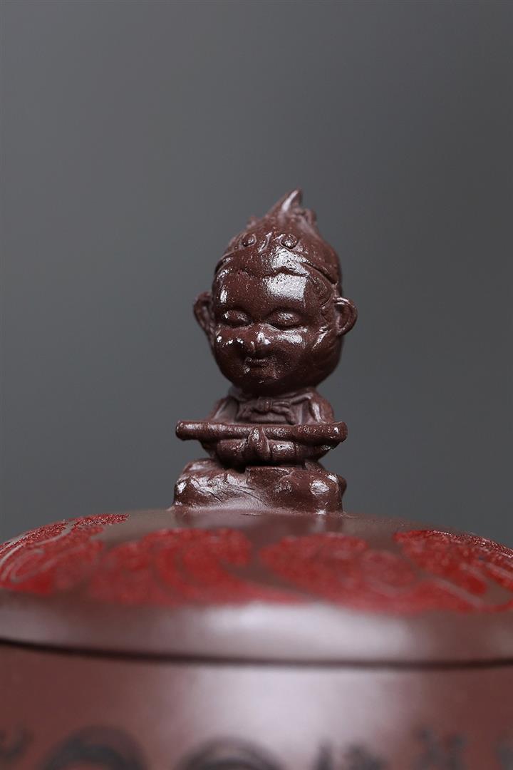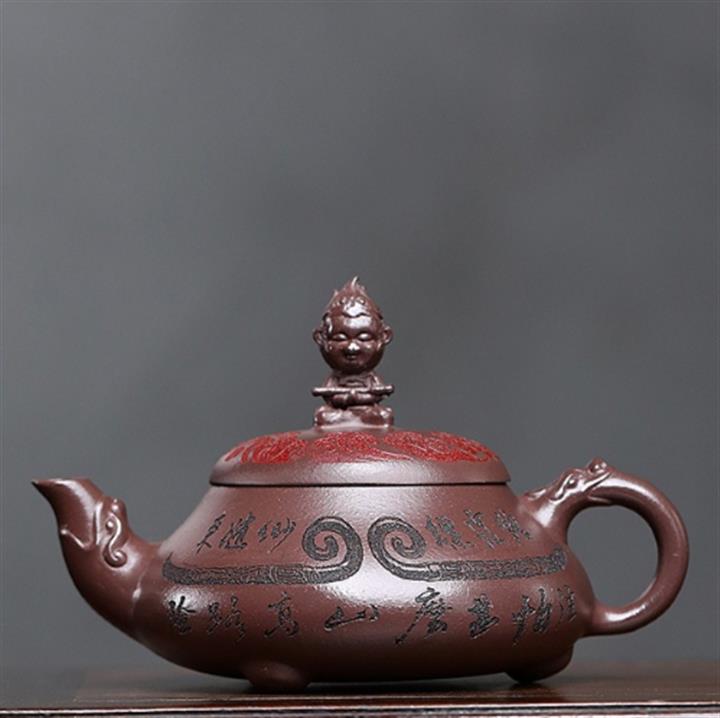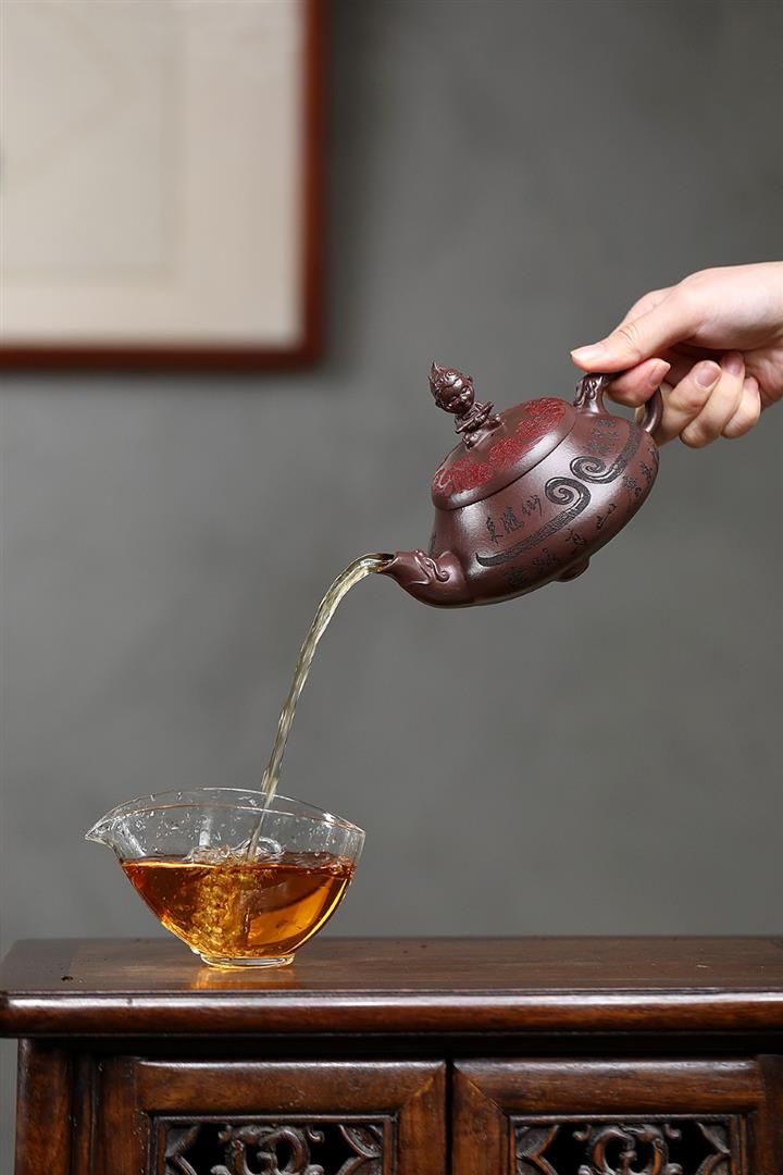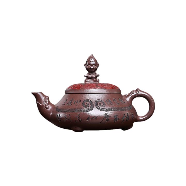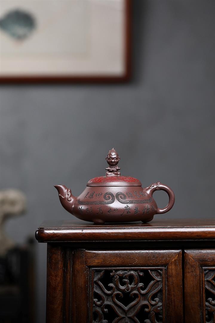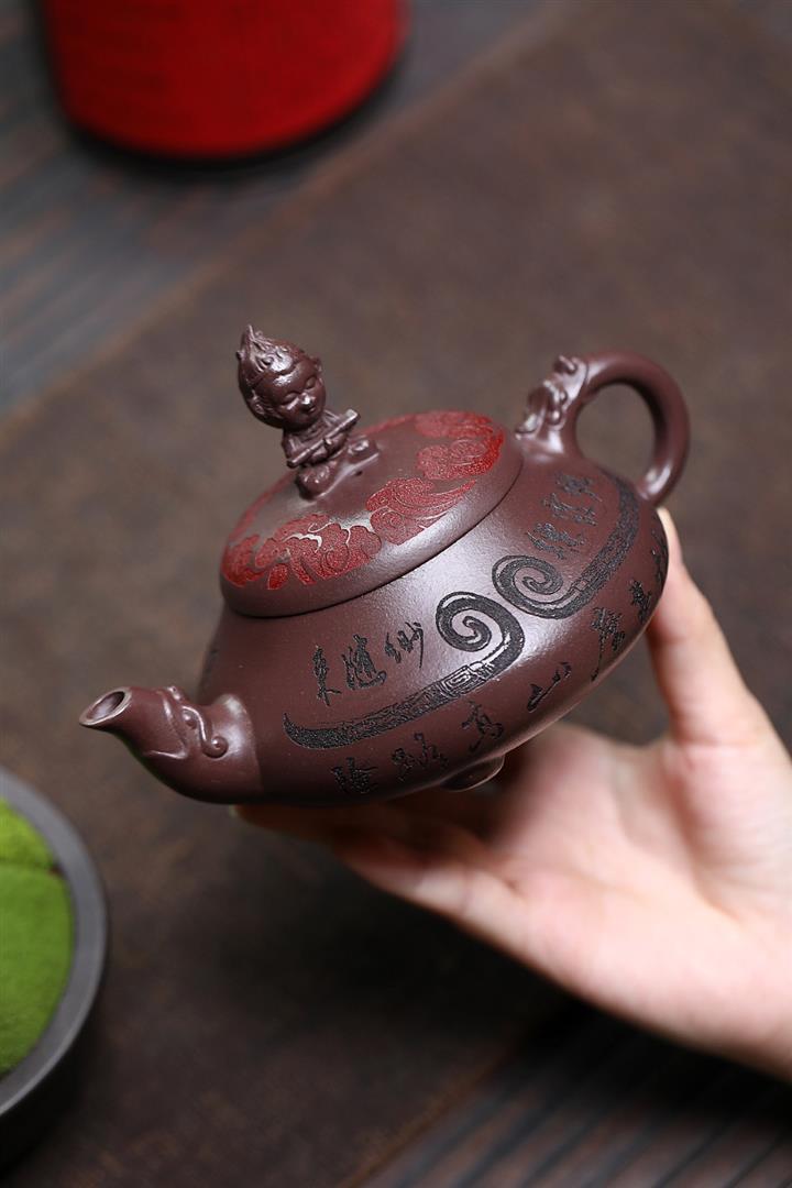 砂壺韻海正品全手工紫朱泥卡蓋心經百財壺紫砂壺茶壺百貨pot3878