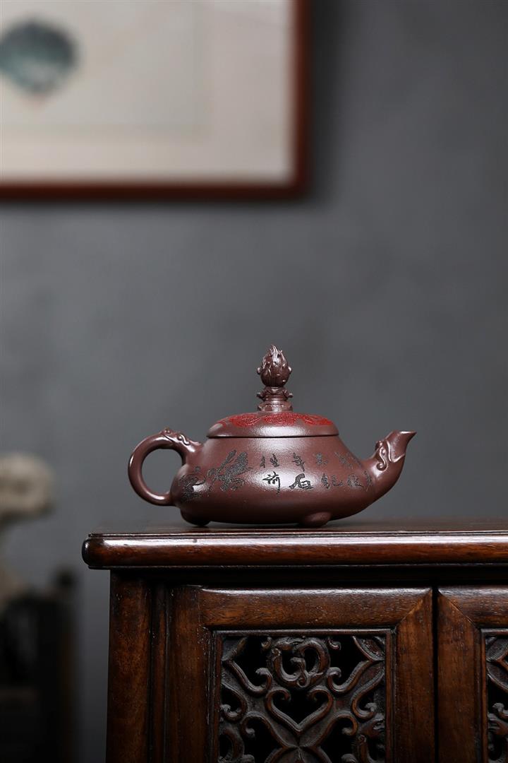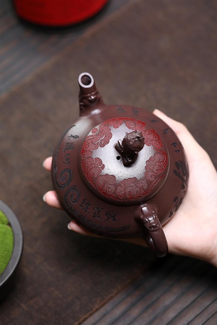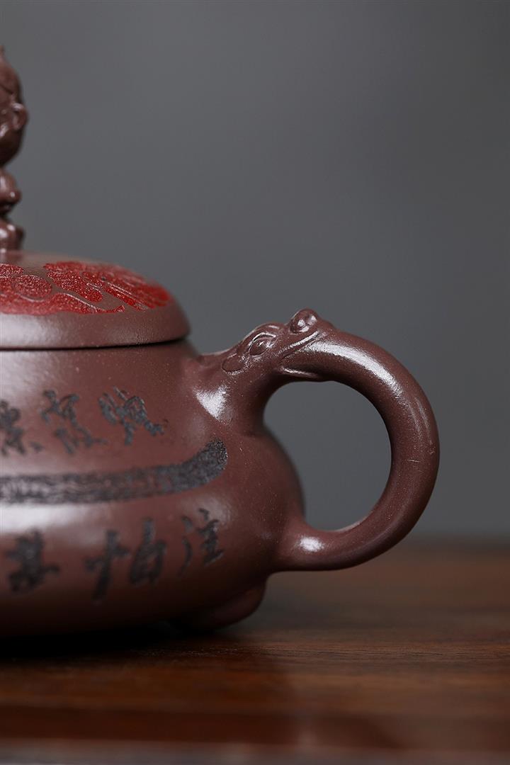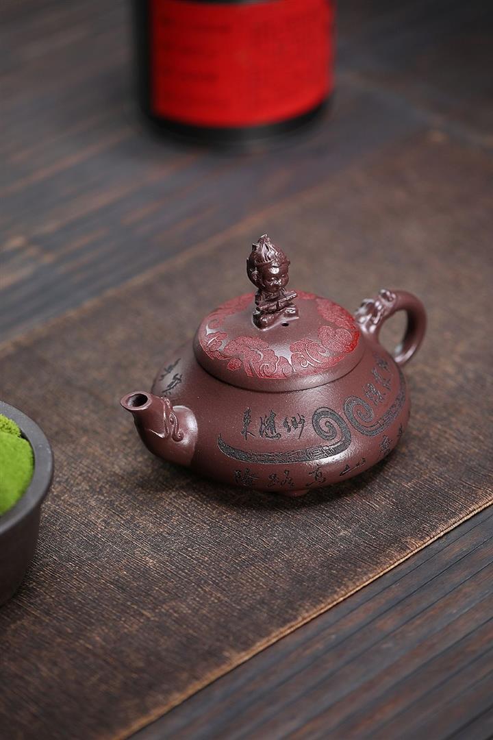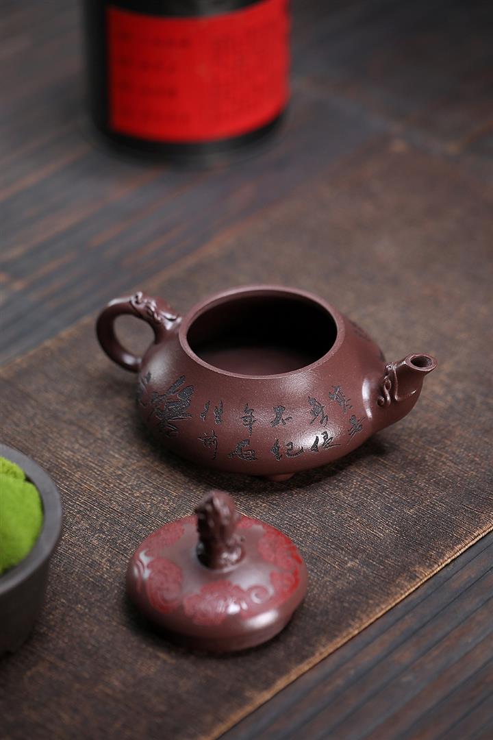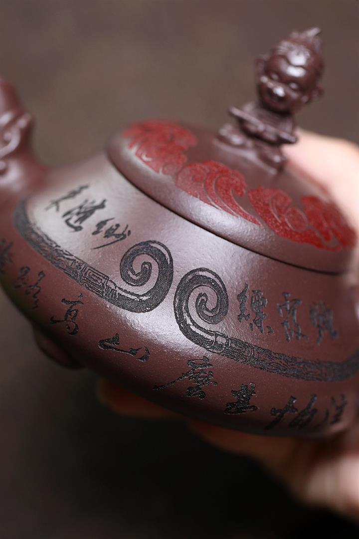 原礦紫泥純手工刻繪觀滄海漢瓦壺紫砂壺200cc pot3733