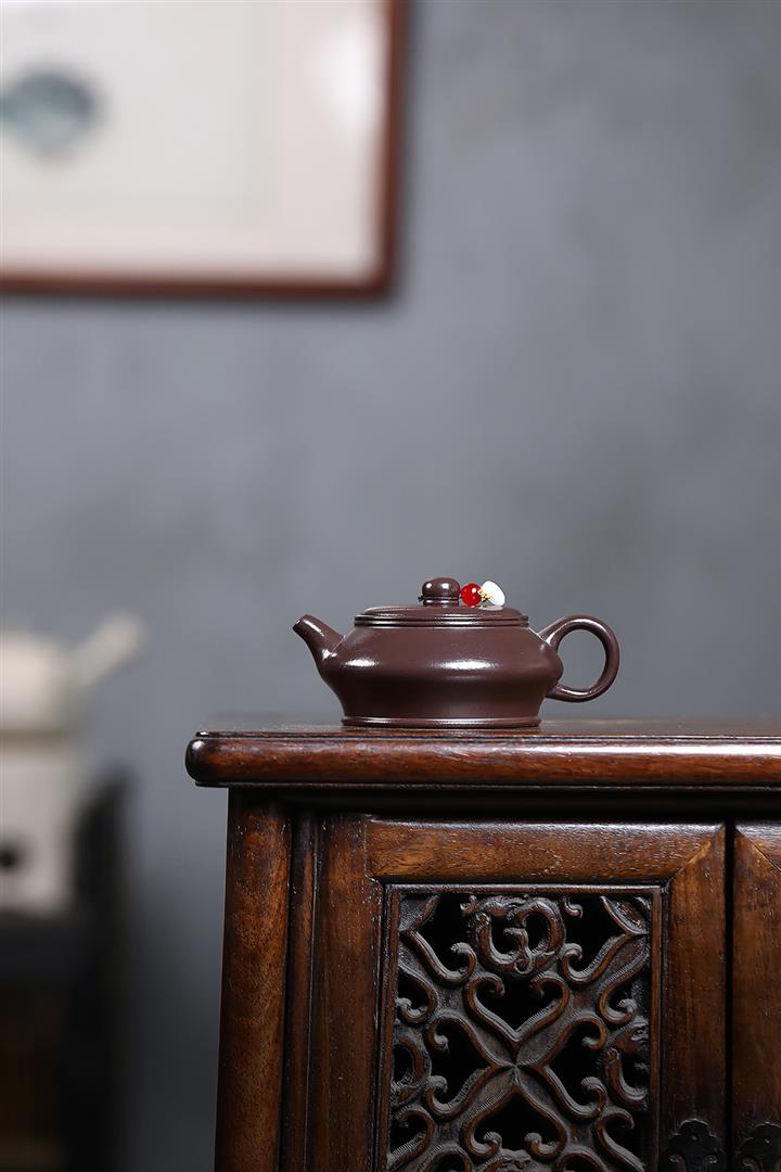 【泥料特點】砂土氣重,似淳實農民,日久使用,漸露鋒芒,養成變化,溫潤莊重。紫砂是壹種雙重氣孔結構的多孔性材質,氣孔微細,密度高。用紫砂壺沏茶,不失原味,且香不渙散,得茶之真香真味。紫砂使用越久,壺身色澤越發光亮照人,氣韻溫雅。紫砂壺長久使用器身會因撫摸擦拭,變得越發溫潤光澤。