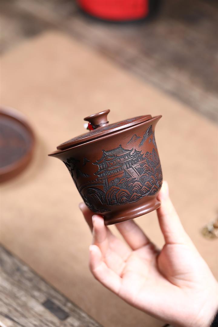 200cc原礦底槽清觀山三才蓋碗POT9257