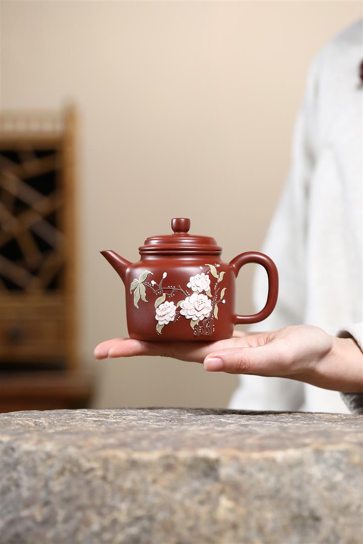 200cc原礦大紅袍花開富貴劍流德鐘茶壺POT9269