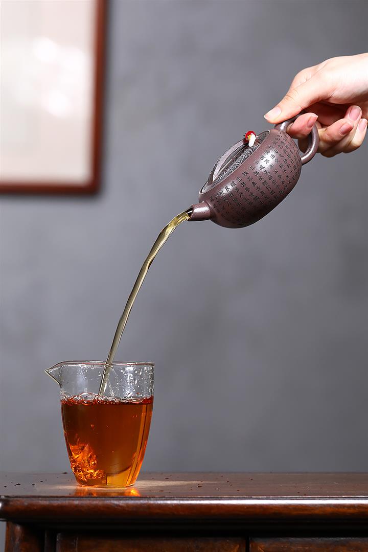 【泥料特點】砂土氣重,似淳實農民,日久使用,漸露鋒芒,養成變化,溫潤莊重。紫砂是壹種雙重氣孔結構的多孔性材質,氣孔微細,密度高。用紫砂壺沏茶,不失原味,且香不渙散,得茶之真香真味。紫砂使用越久,壺身色澤越發光亮照人,氣韻溫雅。紫砂壺長久使用器身會因撫摸擦拭,變得越發溫潤光澤。
