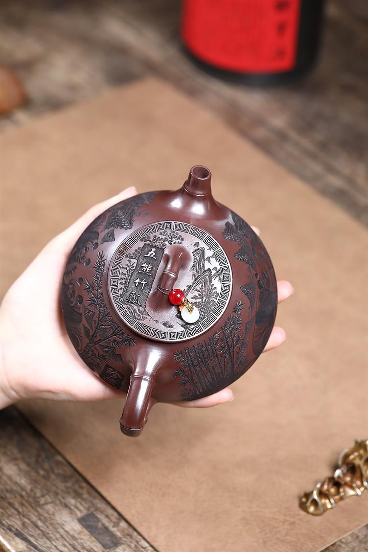 原礦紫泥祥瑞提梁紫砂壺POT4852