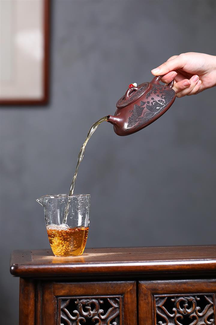 【泥料特點】砂土氣重,似淳實農民,日久使用,漸露鋒芒,養成變化,溫潤莊重。紫砂是壹種雙重氣孔結構的多孔性材質,氣孔微細,密度高。用紫砂壺沏茶,不失原味,且香不渙散,得茶之真香真味。紫砂使用越久,壺身色澤越發光亮照人,氣韻溫雅。紫砂壺長久使用器身會因撫摸擦拭,變得越發溫潤光澤。