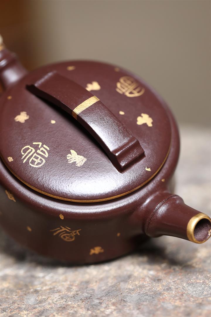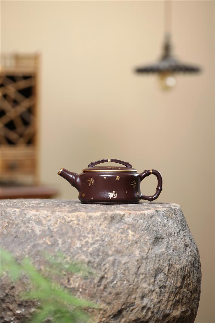 190cc原礦紫泥描金竹節漢瓦壹壺兩杯茶壺POT9286