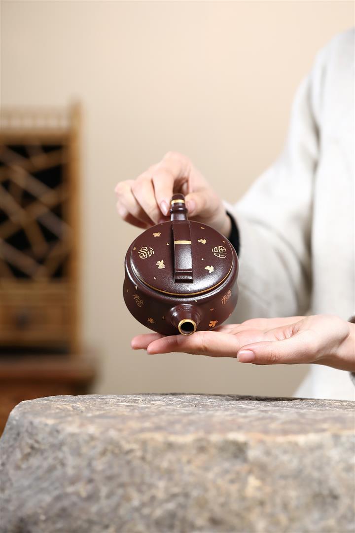 200cc原礦赤金朱泥靈猴獻瑞茶壺POT8513