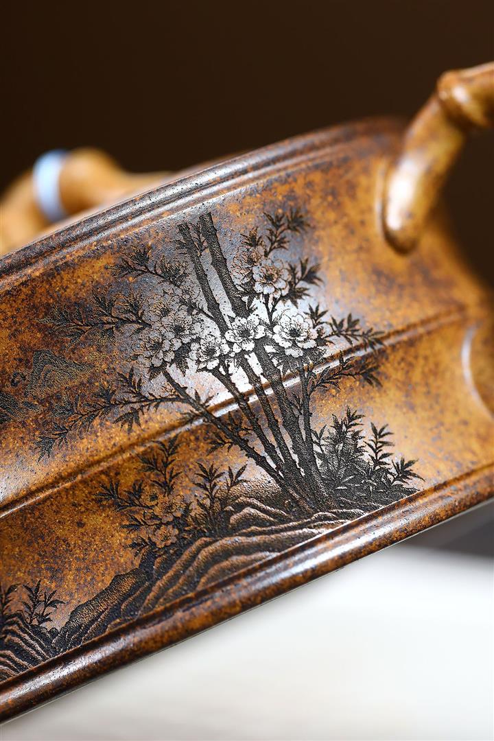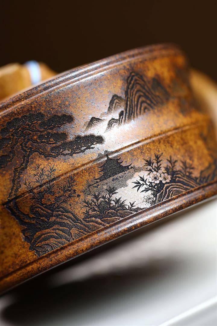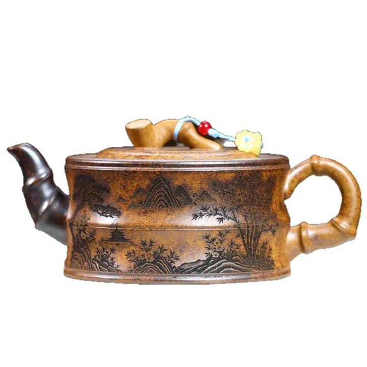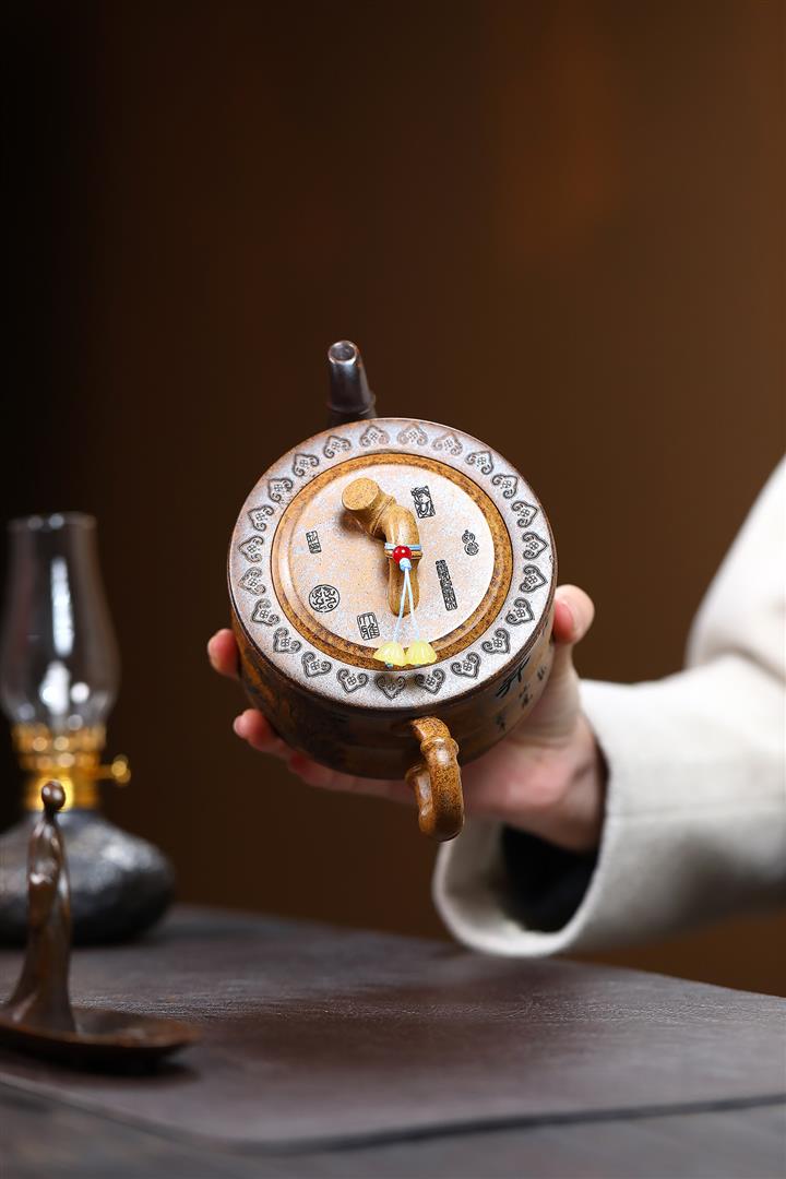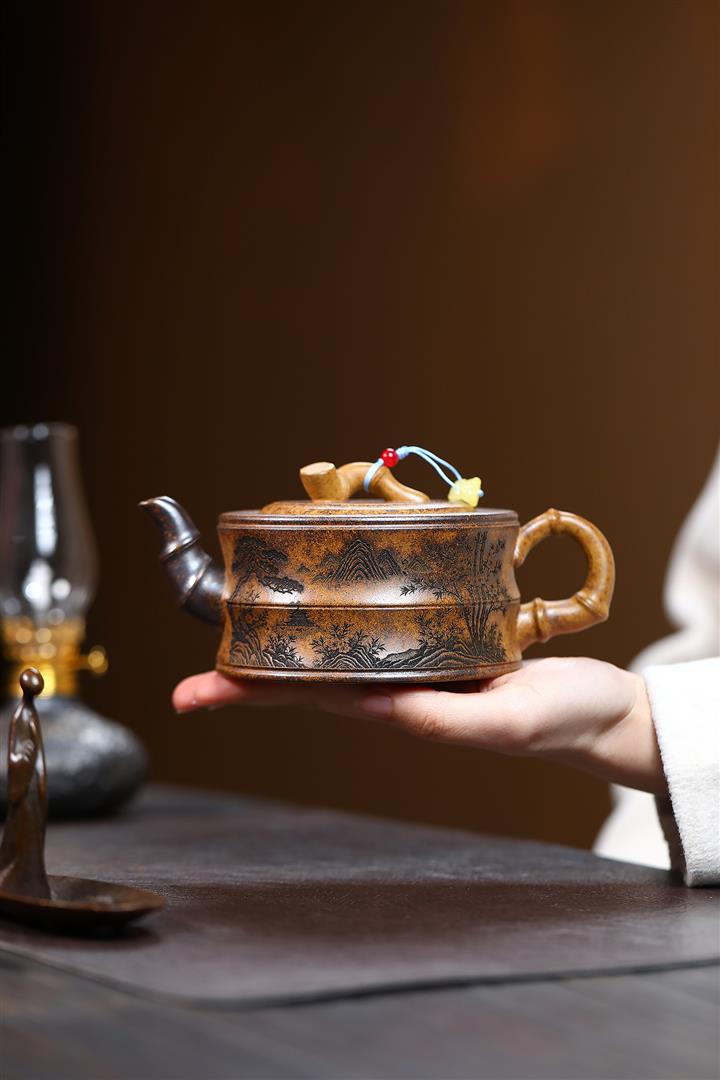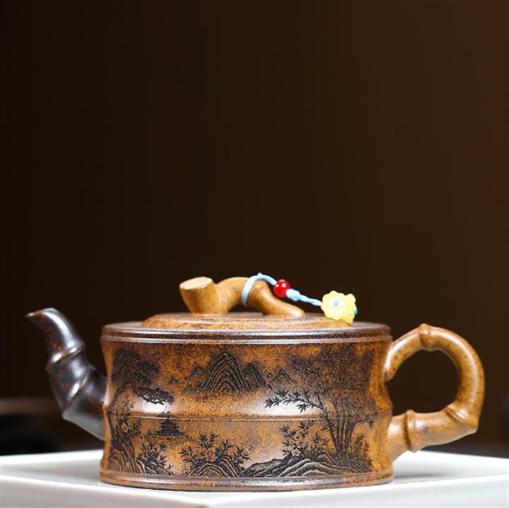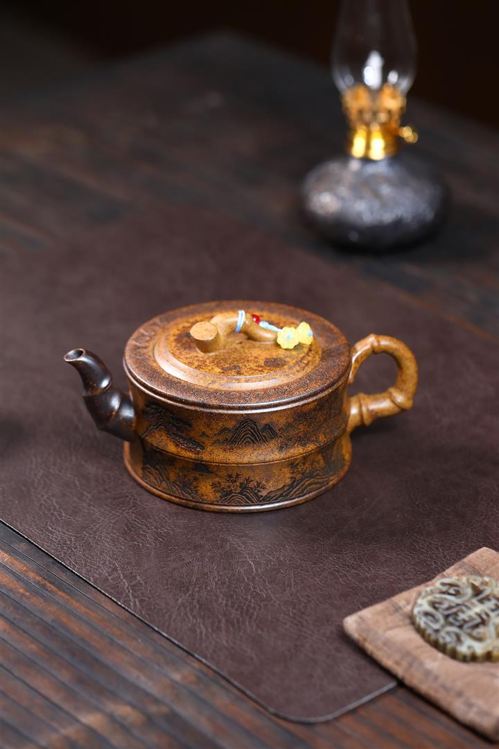 原礦紅皮龍滿刻山水漢瓦茶壺POT7226