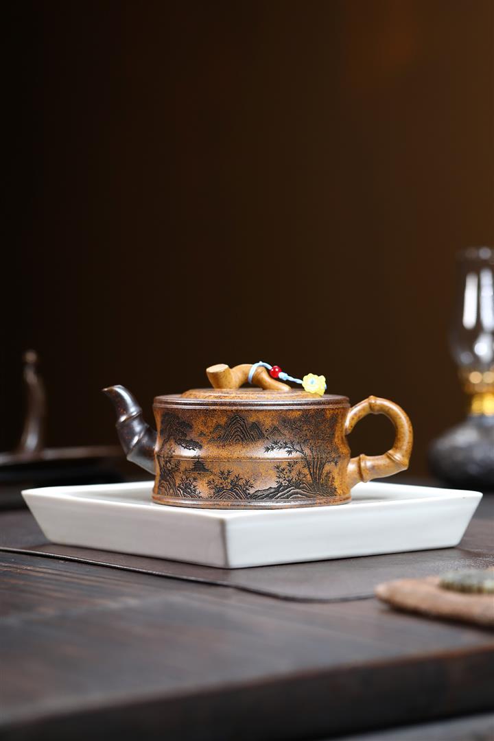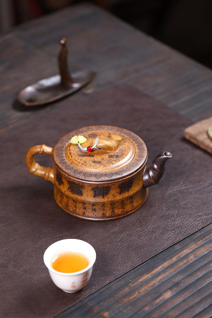 400cc原礦龍骨金砂柴燒柴窯竹段泡茶壺POT9290