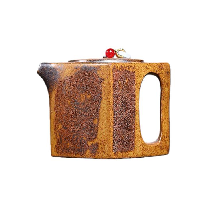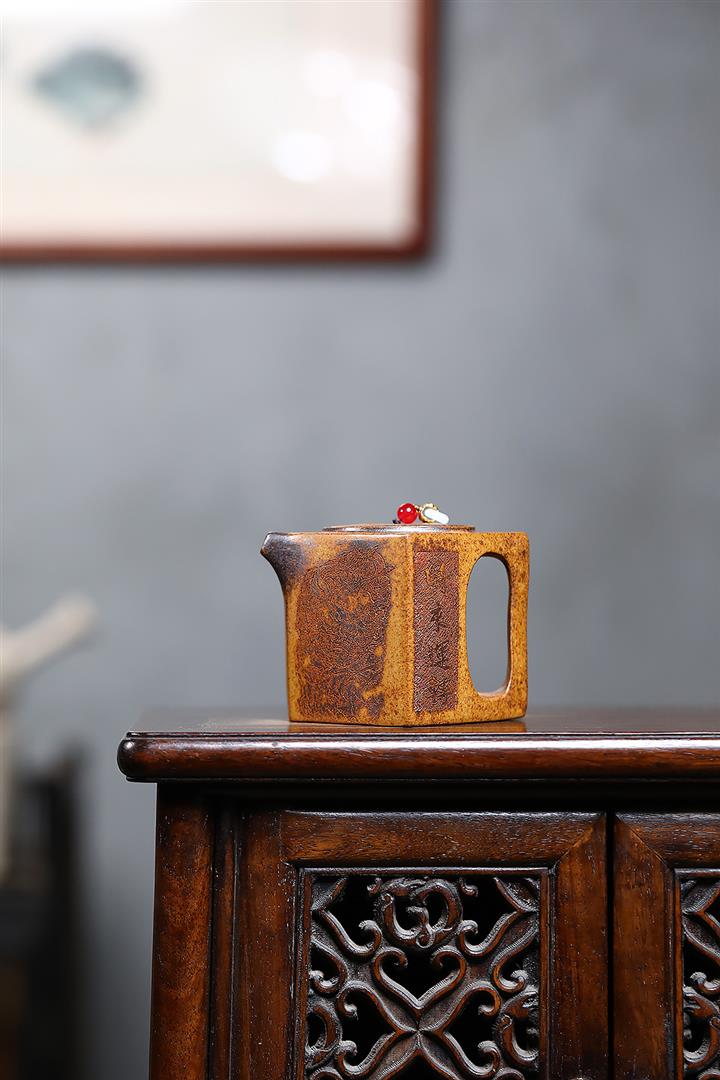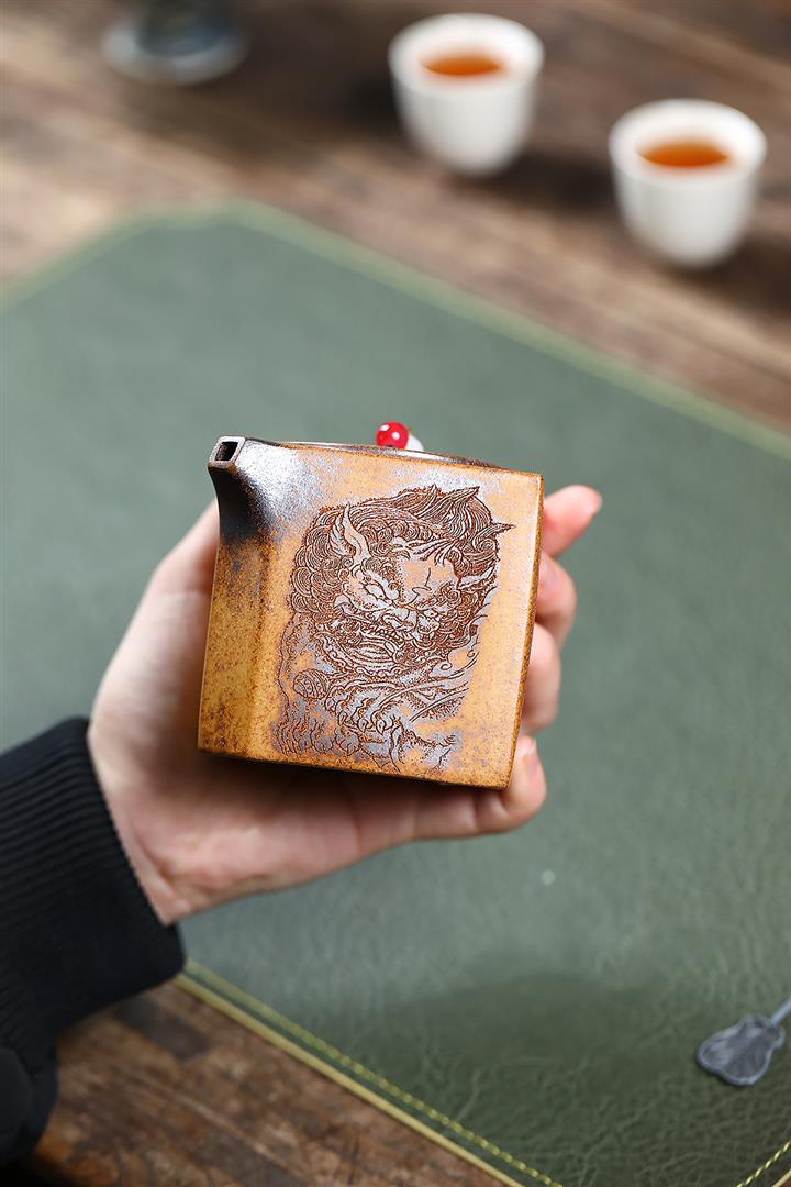 480cc原礦石黃泥滿刻萬馬奔騰茶壺POT7973