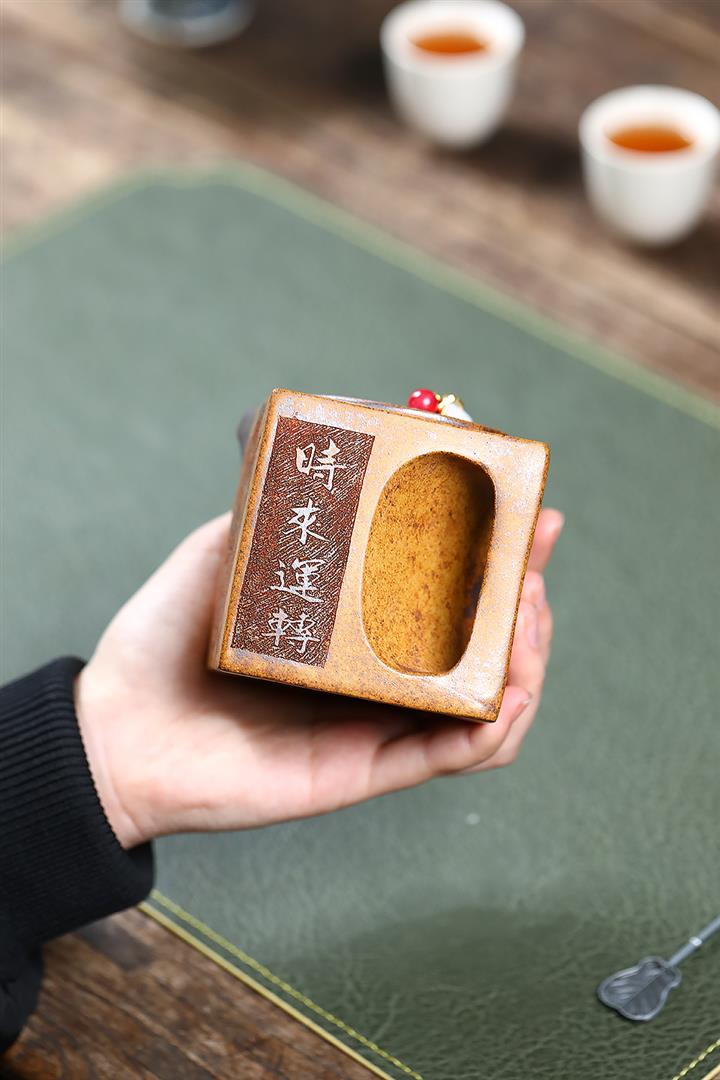 【泥料特點】砂土氣重,似淳實農民,日久使用,漸露鋒芒,養成變化,溫潤莊重。紫砂是壹種雙重氣孔結構的多孔性材質,氣孔微細,密度高。用紫砂壺沏茶,不失原味,且香不渙散,得茶之真香真味。紫砂使用越久,壺身色澤越發光亮照人,氣韻溫雅。紫砂壺長久使用器身會因撫摸擦拭,變得越發溫潤光澤。