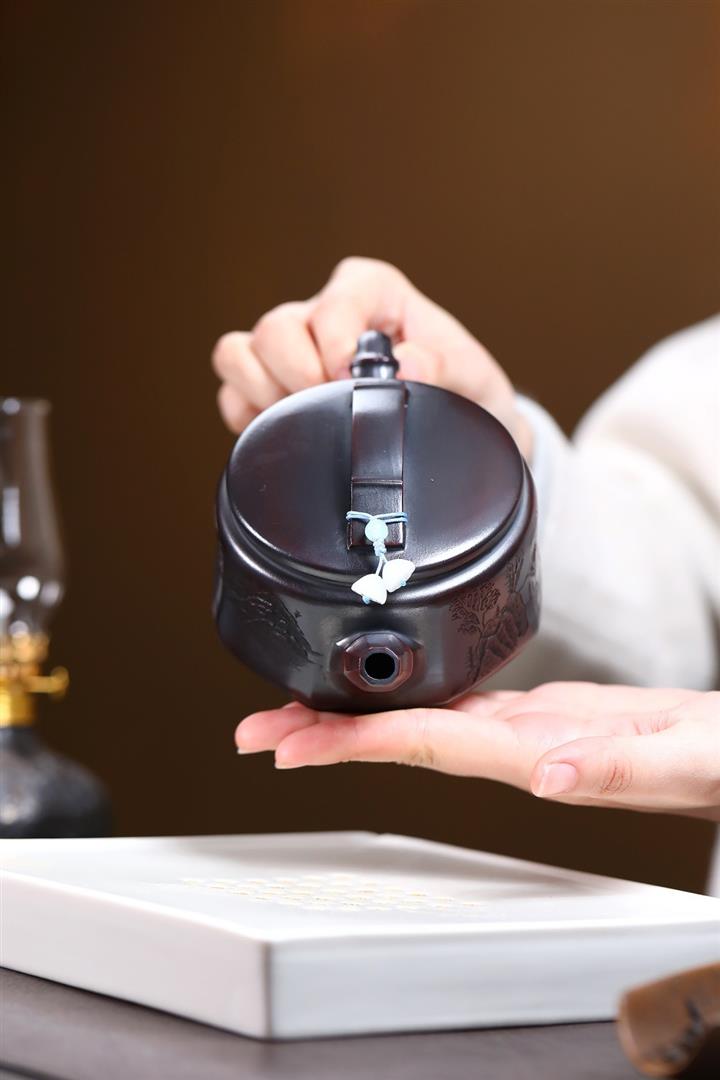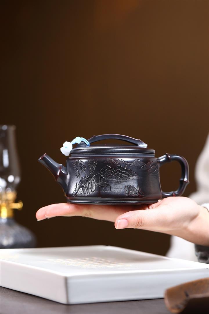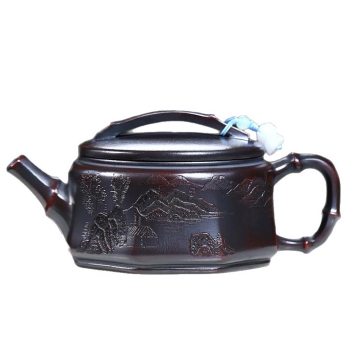 手工原礦段泥手刻華櫻紫砂壺200cc pot3451