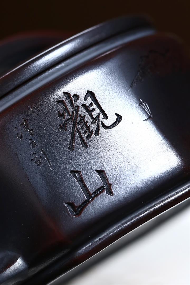 原礦大紅袍手工刻繪座有蘭言仿古紫砂壺250cc pot3460