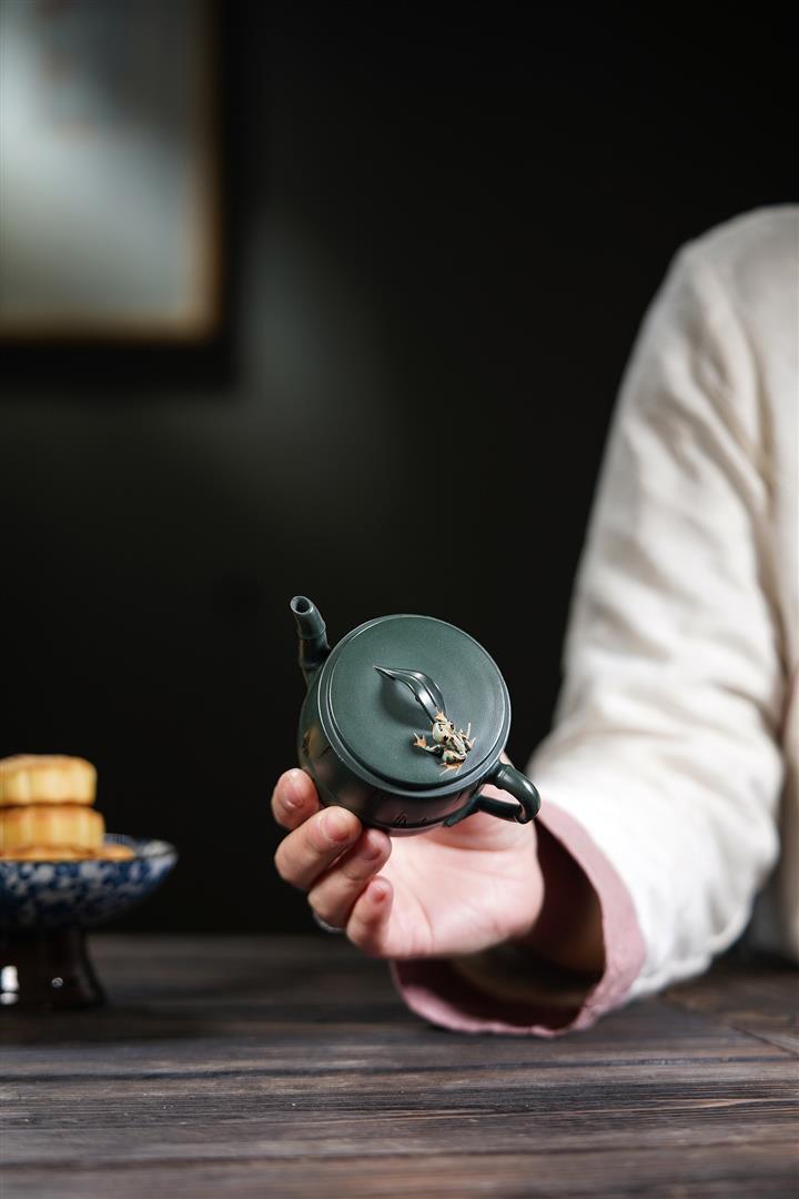 210cc原礦綠泥百福納財刻繪茶壺POT8363