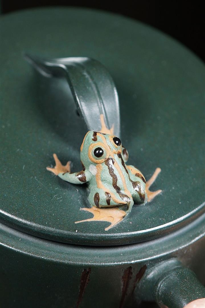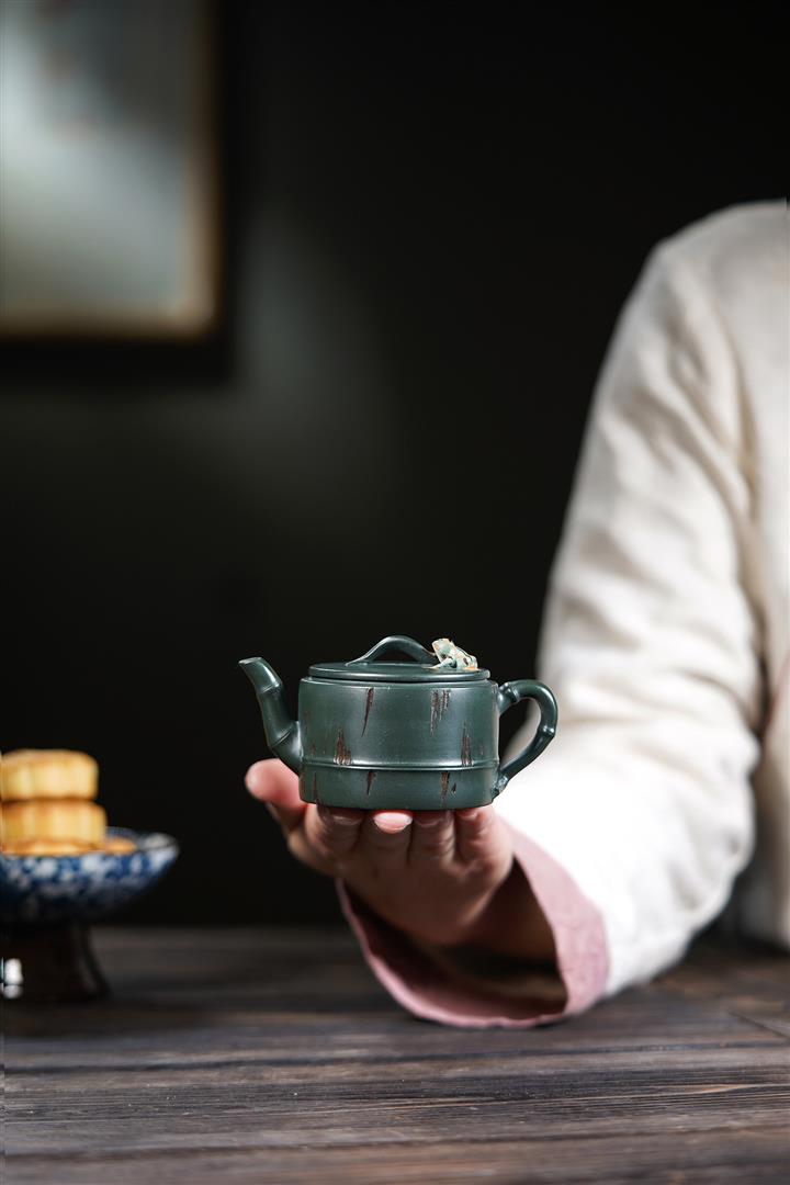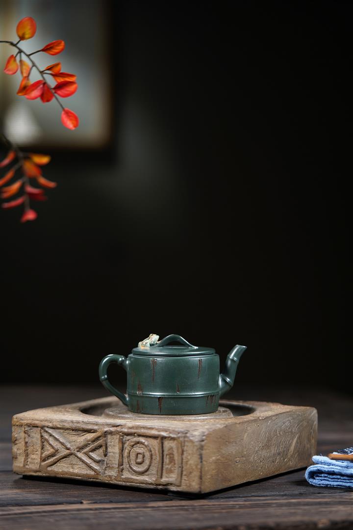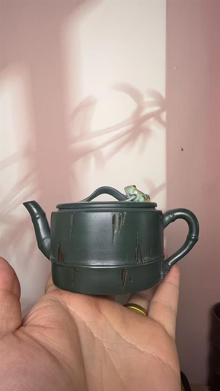 150cc原礦綠泥蛙趣竹節茶壺POT9341