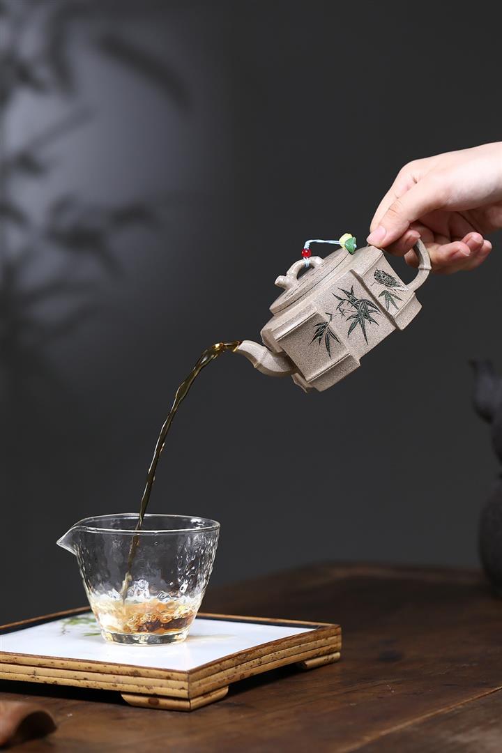 220cc原礦段泥火雲燒竹影秦權泡茶壺POT9469