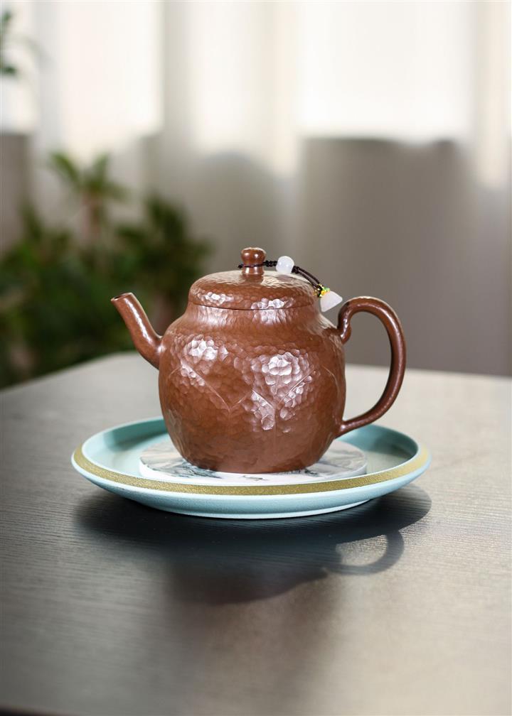 【泥料特點】砂土氣重,似淳實農民,日久使用,漸露鋒芒,養成變化,溫潤莊重。紫砂是壹種雙重氣孔結構的多孔性材質,氣孔微細,密度高。用紫砂壺沏茶,不失原味,且香不渙散,得茶之真香真味。紫砂使用越久,壺身色澤越發光亮照人,氣韻溫雅。紫砂壺長久使用器身會因撫摸擦拭,變得越發溫潤光澤。