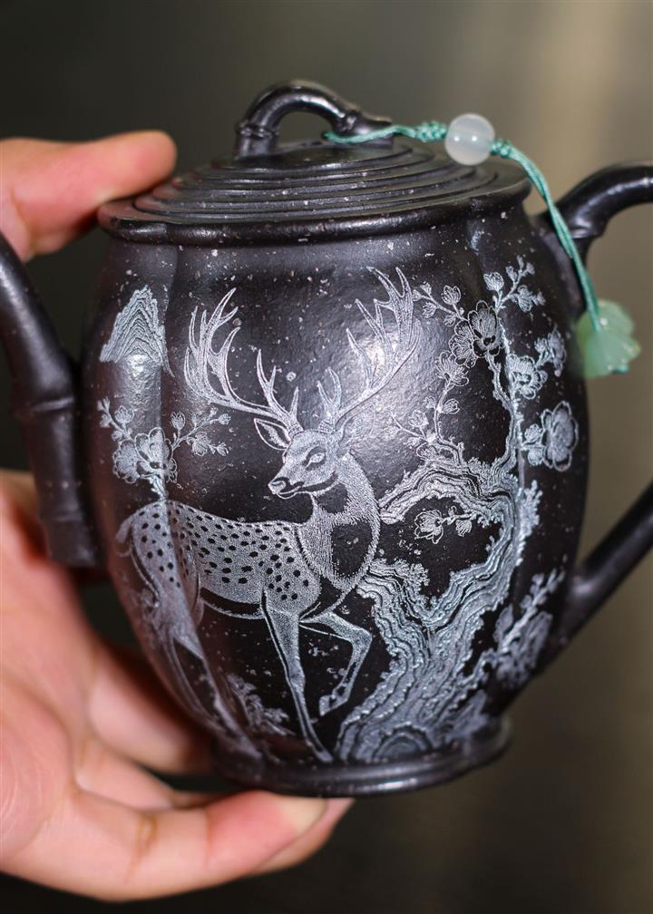 【泥料特點】砂土氣重,似淳實農民,日久使用,漸露鋒芒,養成變化,溫潤莊重。紫砂是壹種雙重氣孔結構的多孔性材質,氣孔微細,密度高。用紫砂壺沏茶,不失原味,且香不渙散,得茶之真香真味。紫砂使用越久,壺身色澤越發光亮照人,氣韻溫雅。紫砂壺長久使用器身會因撫摸擦拭,變得越發溫潤光澤。