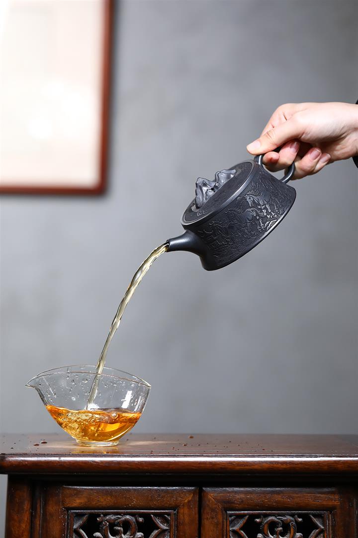 【泥料特點】砂土氣重,似淳實農民,日久使用,漸露鋒芒,養成變化,溫潤莊重。紫砂是壹種雙重氣孔結構的多孔性材質,氣孔微細,密度高。用紫砂壺沏茶,不失原味,且香不渙散,得茶之真香真味。紫砂使用越久,壺身色澤越發光亮照人,氣韻溫雅。紫砂壺長久使用器身會因撫摸擦拭,變得越發溫潤光澤。