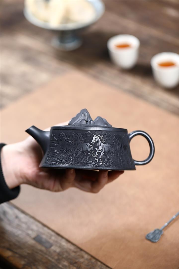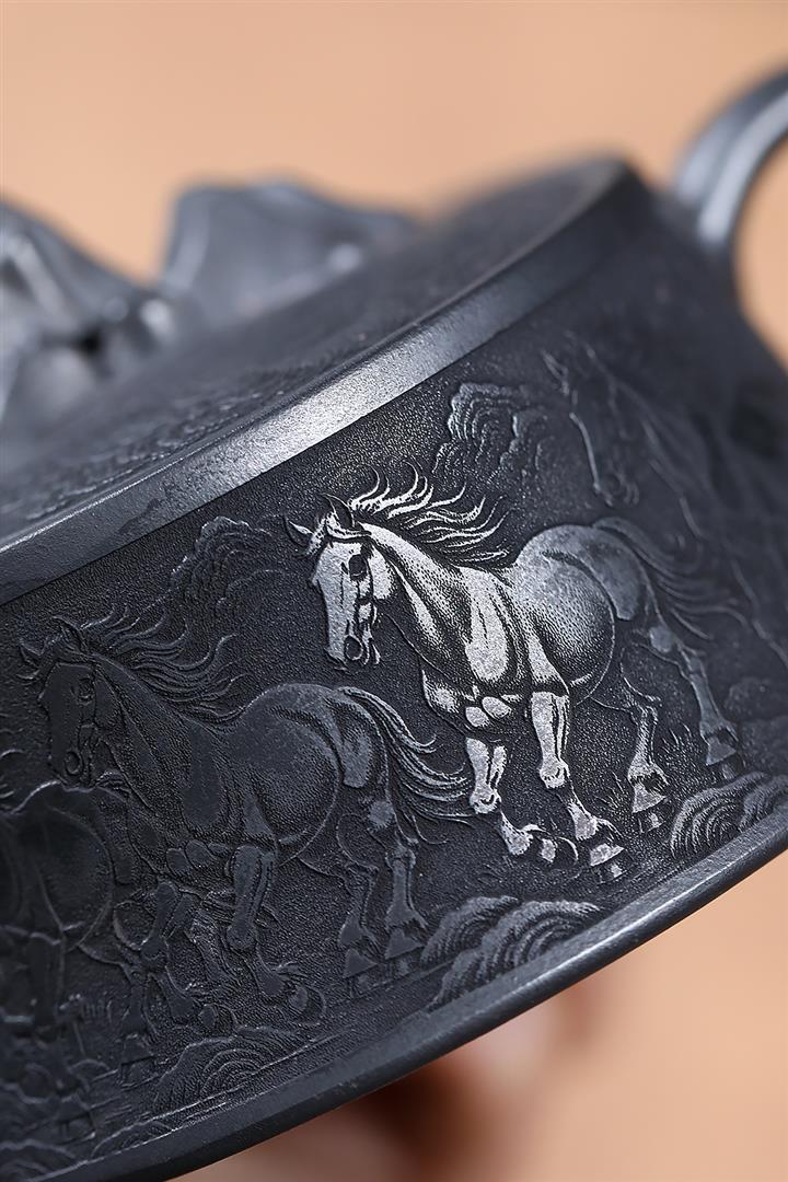 280cc原礦玄鐵石黃駿馬柱礎泡茶壺POT9361