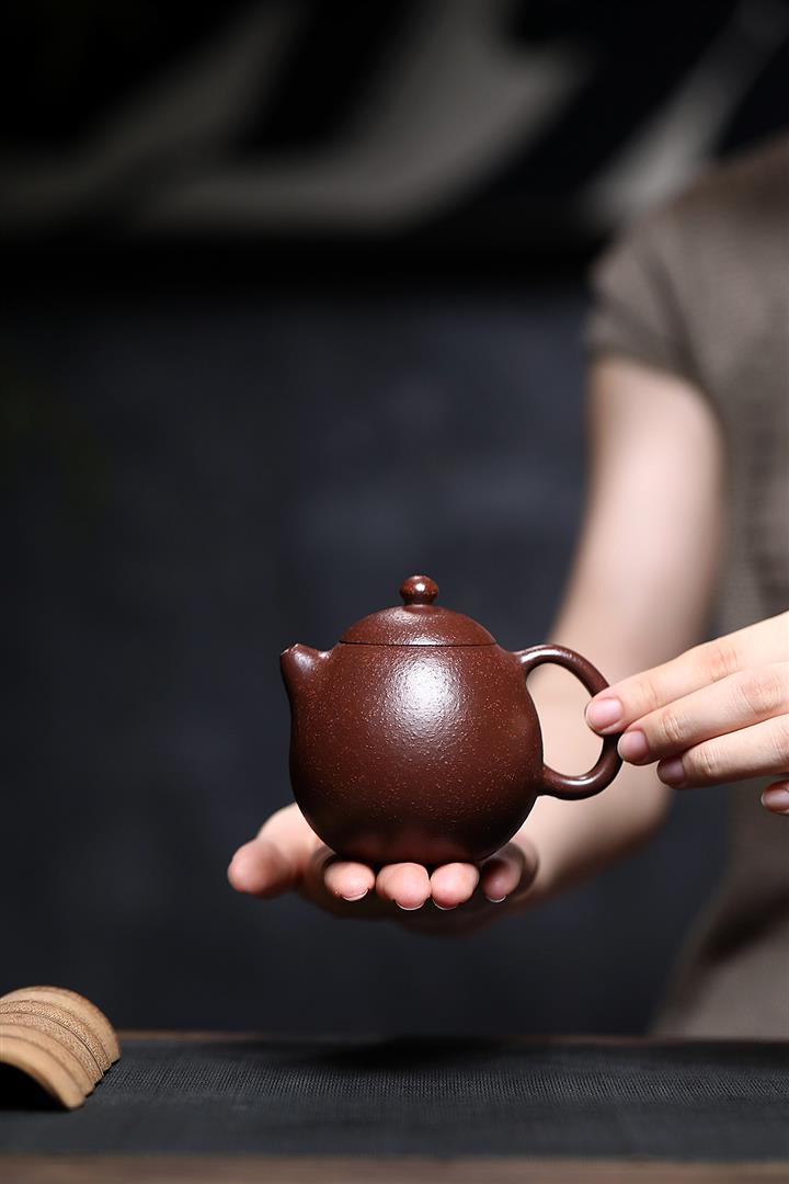 【泥料特點】砂土氣重,似淳實農民,日久使用,漸露鋒芒,養成變化,溫潤莊重。紫砂是壹種雙重氣孔結構的多孔性材質,氣孔微細,密度高。用紫砂壺沏茶,不失原味,且香不渙散,得茶之真香真味。紫砂使用越久,壺身色澤越發光亮照人,氣韻溫雅。紫砂壺長久使用器身會因撫摸擦拭,變得越發溫潤光澤。