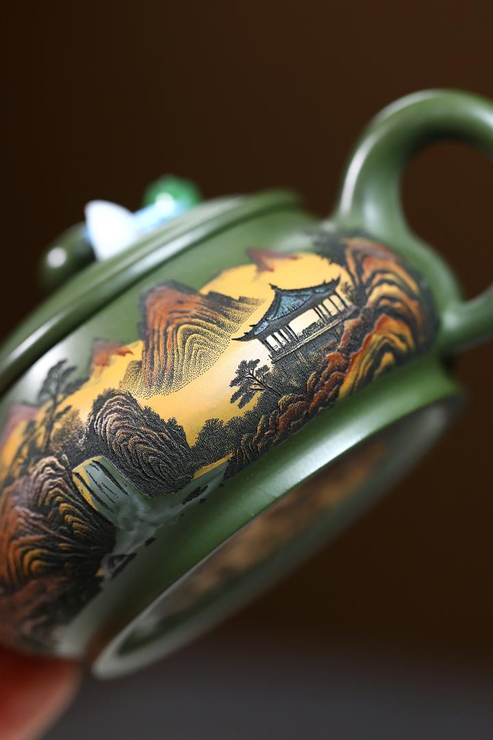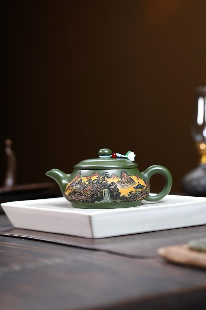 230cc原礦優質綠泥錦繡寒江泡茶壺POT9368