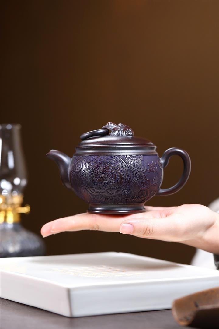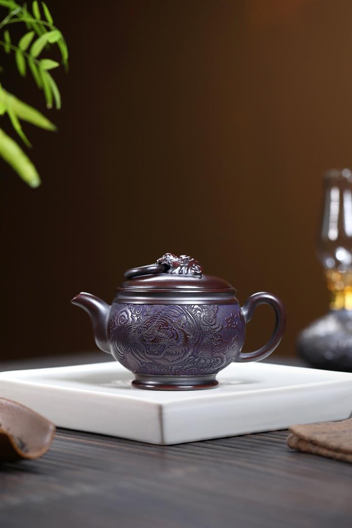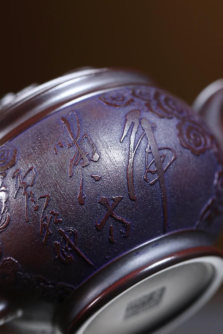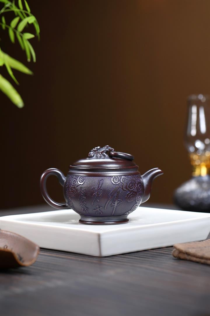 原礦黑泥刻繪德鐘紫砂壺POT4819