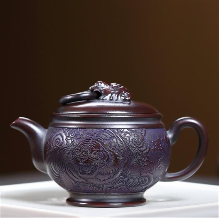 260cc原礦古銅烏泥虎虎生威漢瓦泡茶壺POT9370