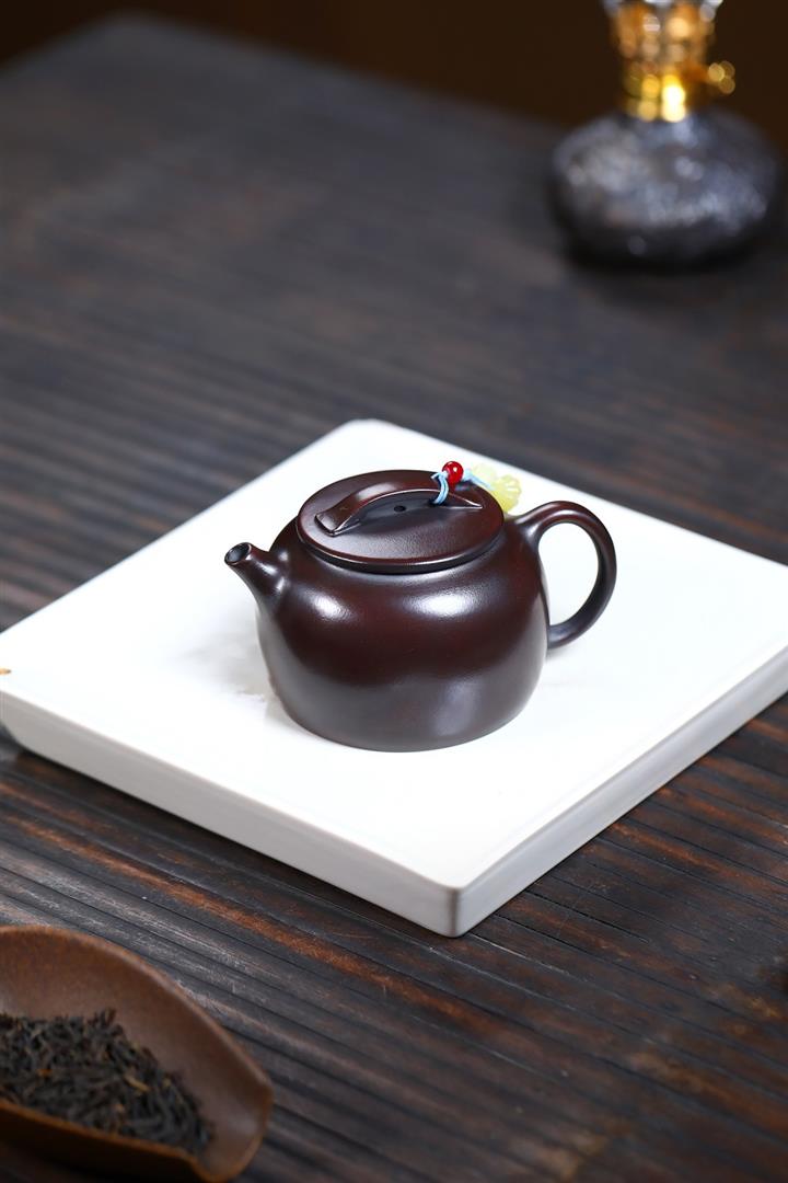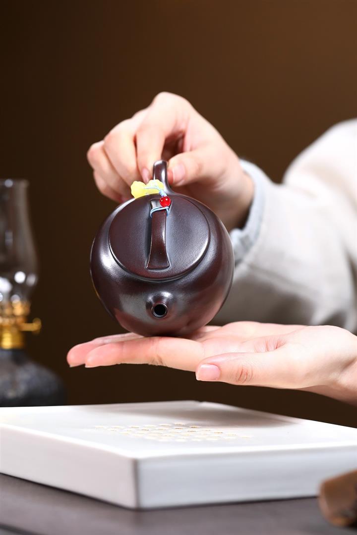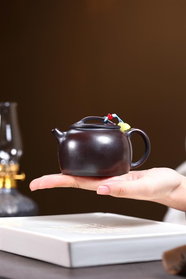 朱泥捂灰金龜換酒手工描金紫砂壺POT6500