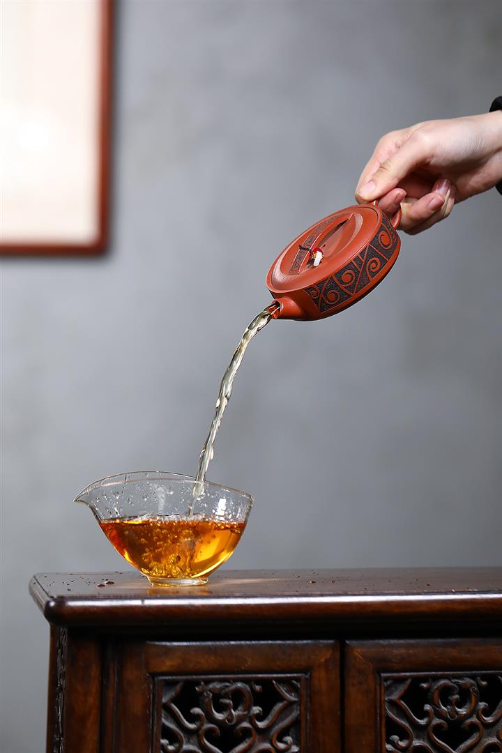 【泥料特點】砂土氣重,似淳實農民,日久使用,漸露鋒芒,養成變化,溫潤莊重。紫砂是壹種雙重氣孔結構的多孔性材質,氣孔微細,密度高。用紫砂壺沏茶,不失原味,且香不渙散,得茶之真香真味。紫砂使用越久,壺身色澤越發光亮照人,氣韻溫雅。紫砂壺長久使用器身會因撫摸擦拭,變得越發溫潤光澤。
