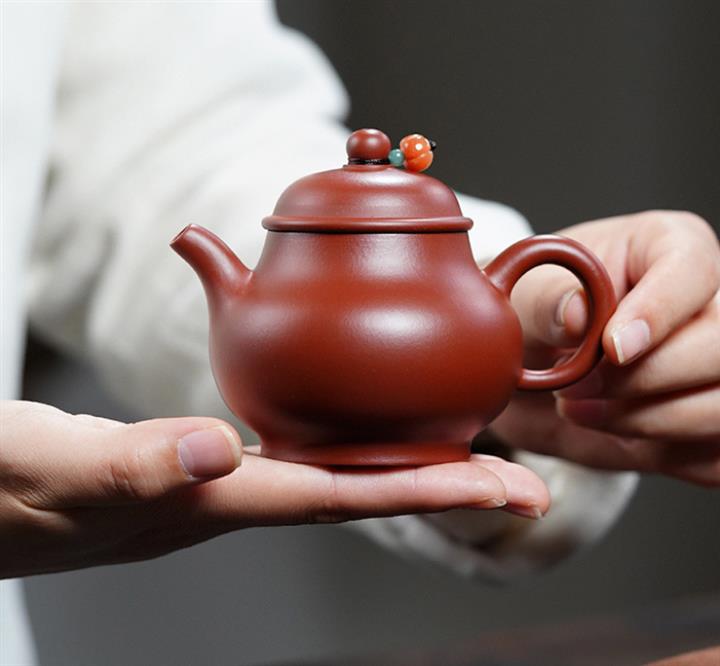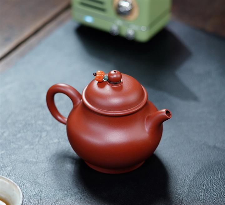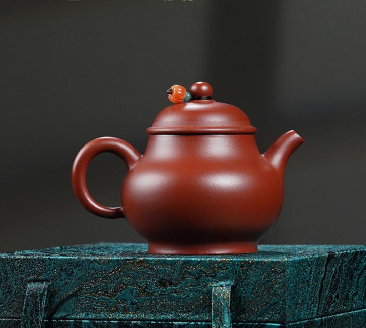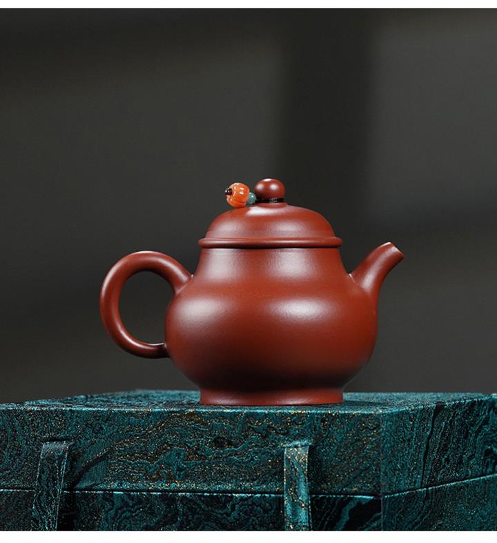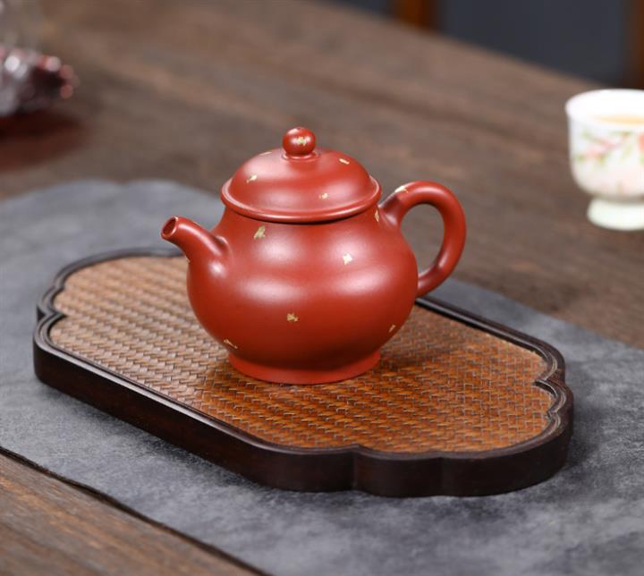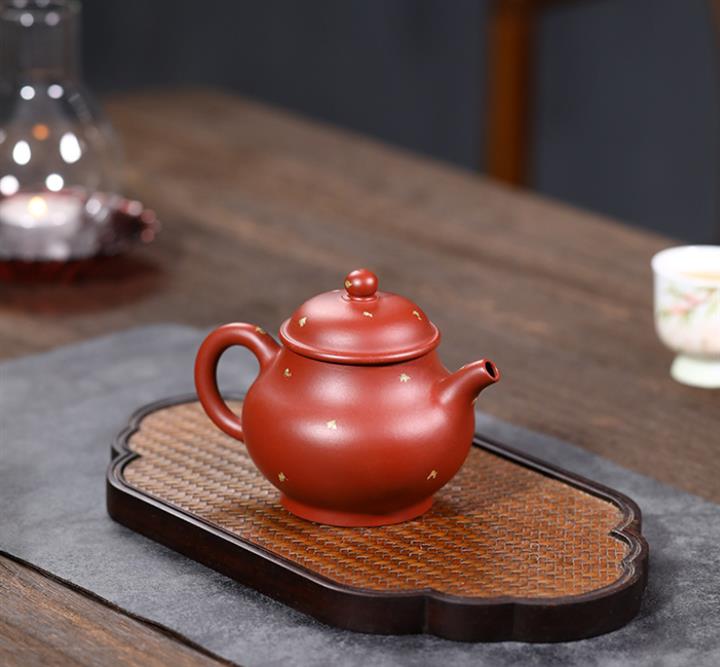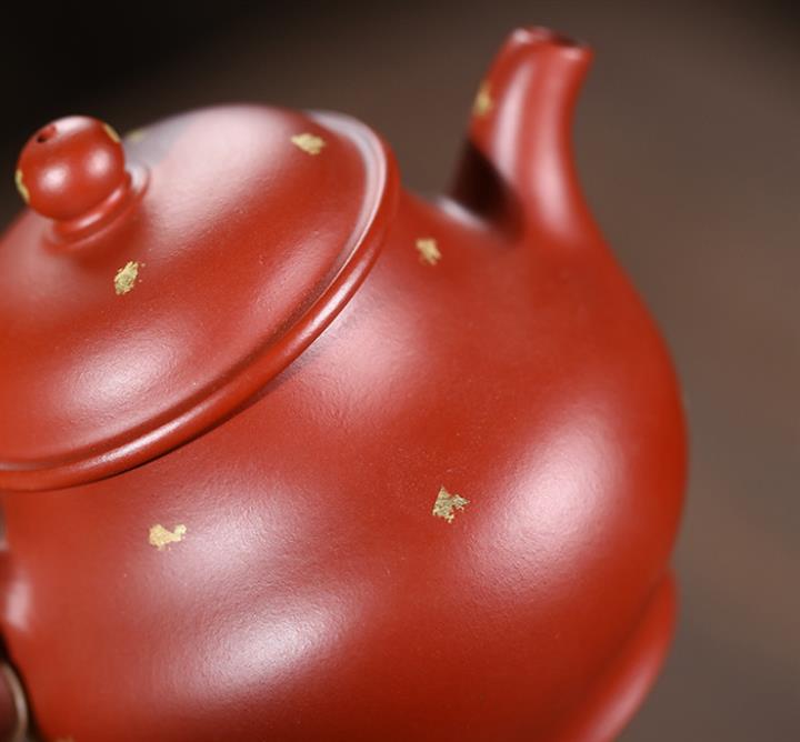 175cc原礦朱泥大紅袍灑金小潘壺泡茶壺POT9390