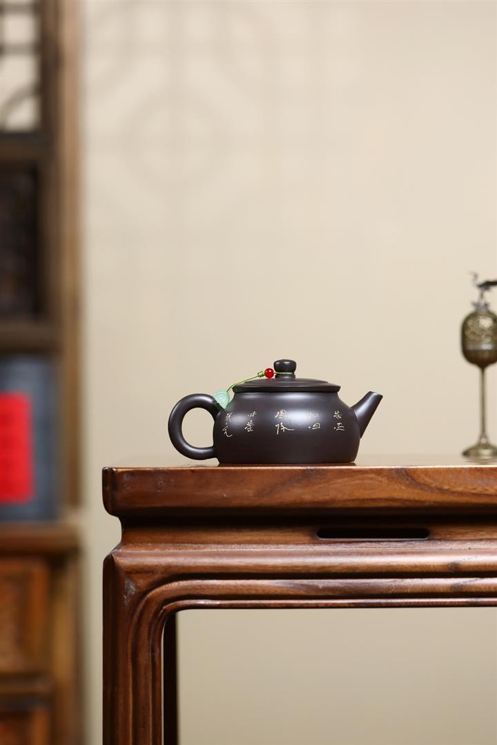 210cc原礦黑朱泥井欄蝶夢泡茶壺POT9409